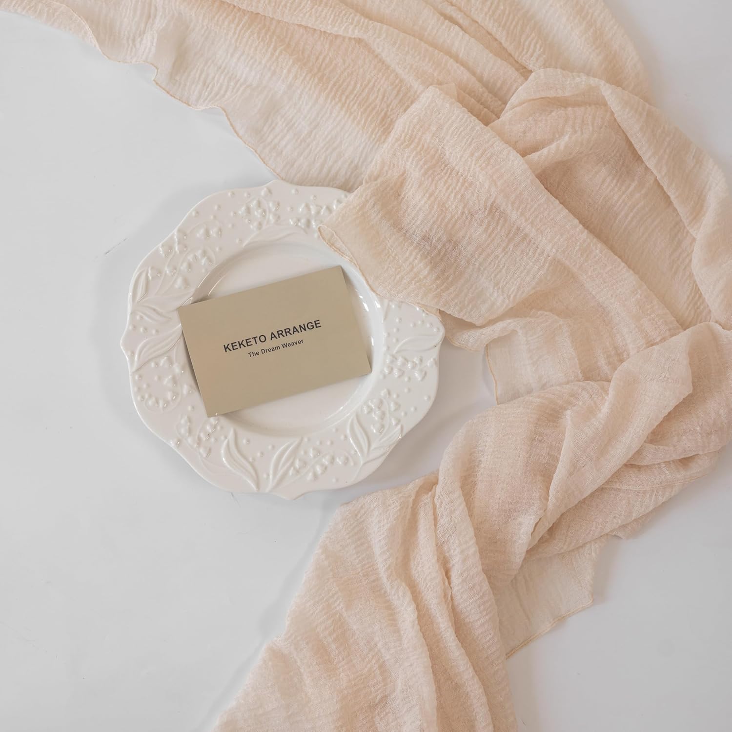Beige Gauze Rustic Cheesecloth Table Runner 120 Inch 10 FT for Wedding Baby Shower Bridal Shower Birthday Engagement Garden Outdoor Party Long Sheer Boho Decorations