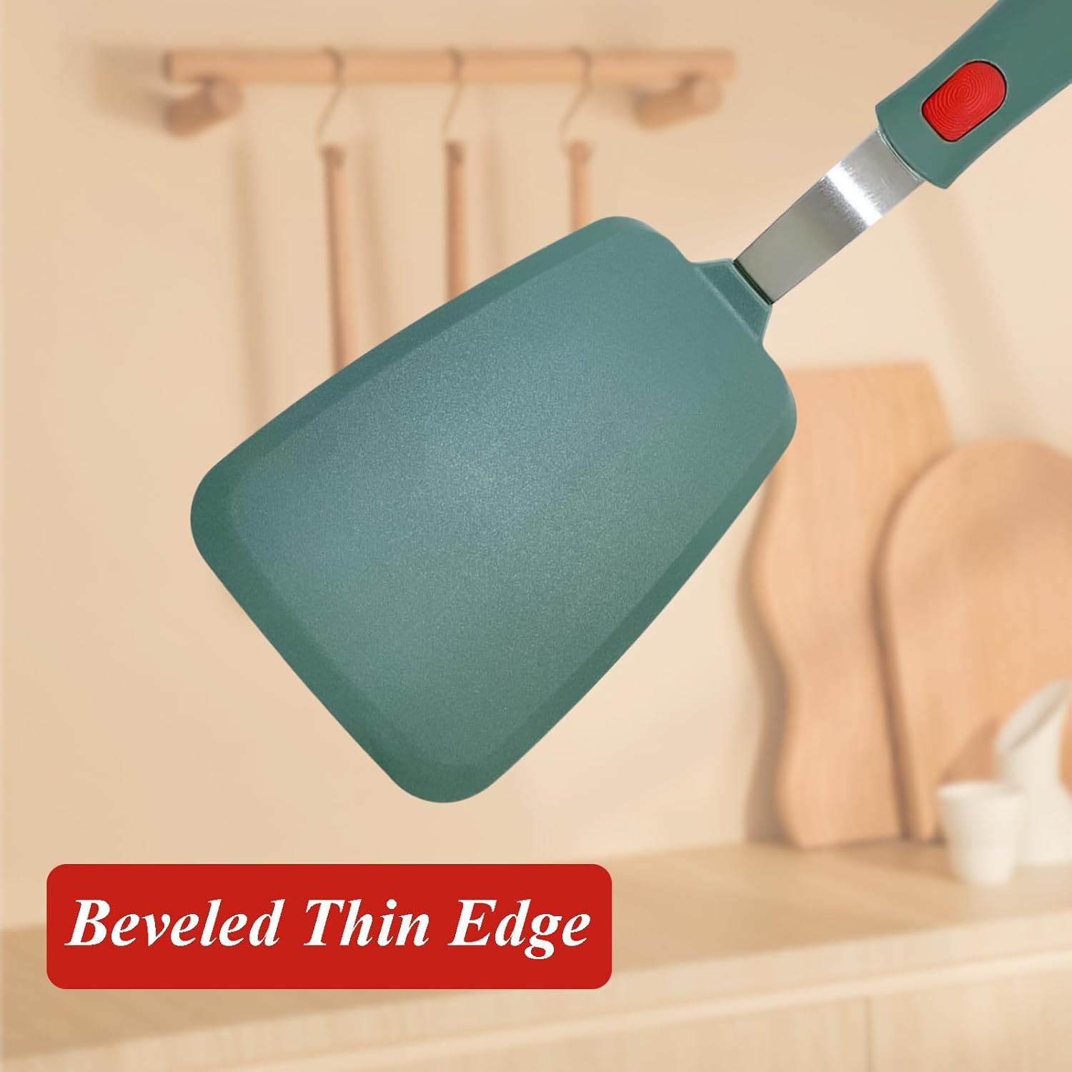 • Ergonomic Handle: Comfortable grip with red button accent, allowing for easy maneuvering and control while cooking with this large spatula, reduces hand fatigue during extended use