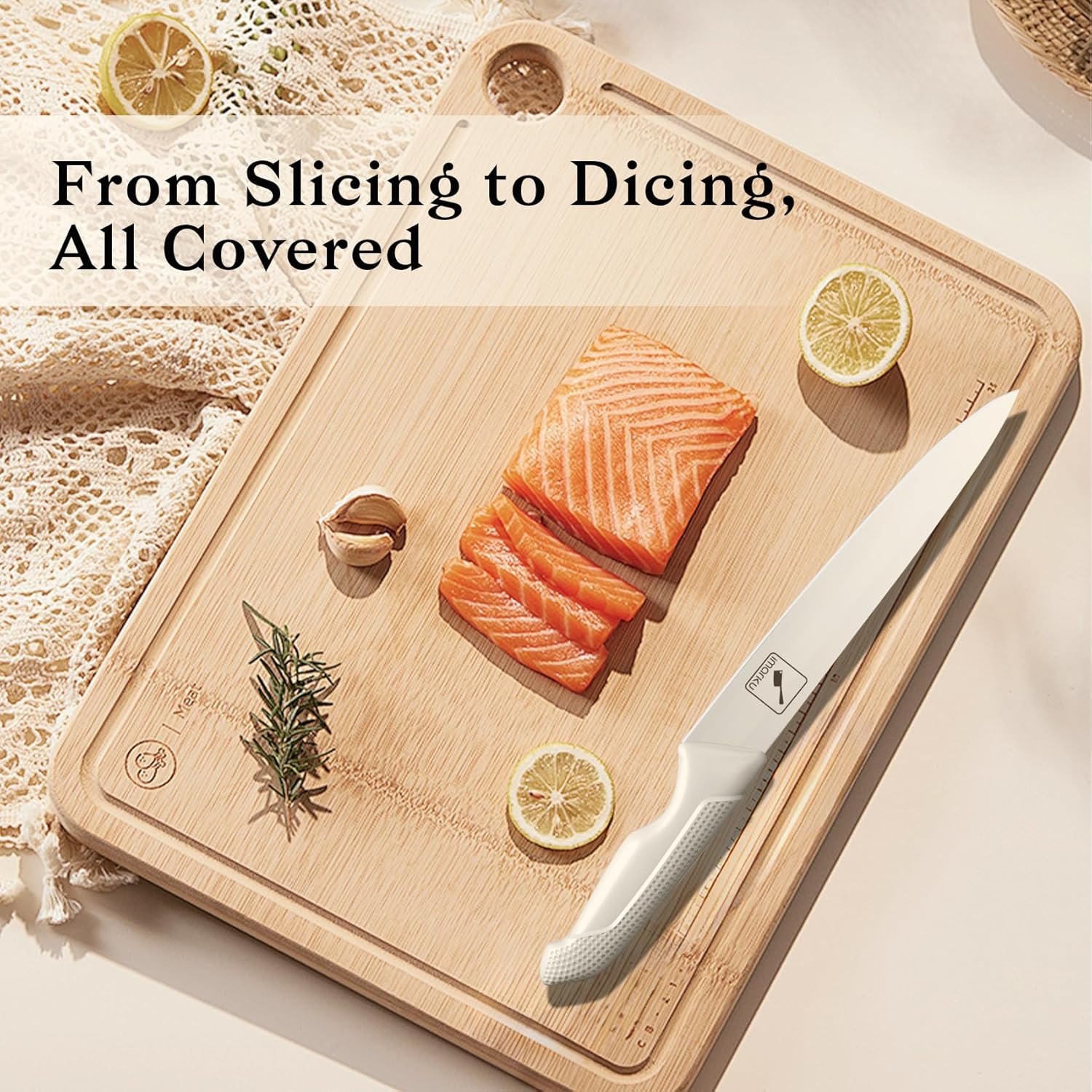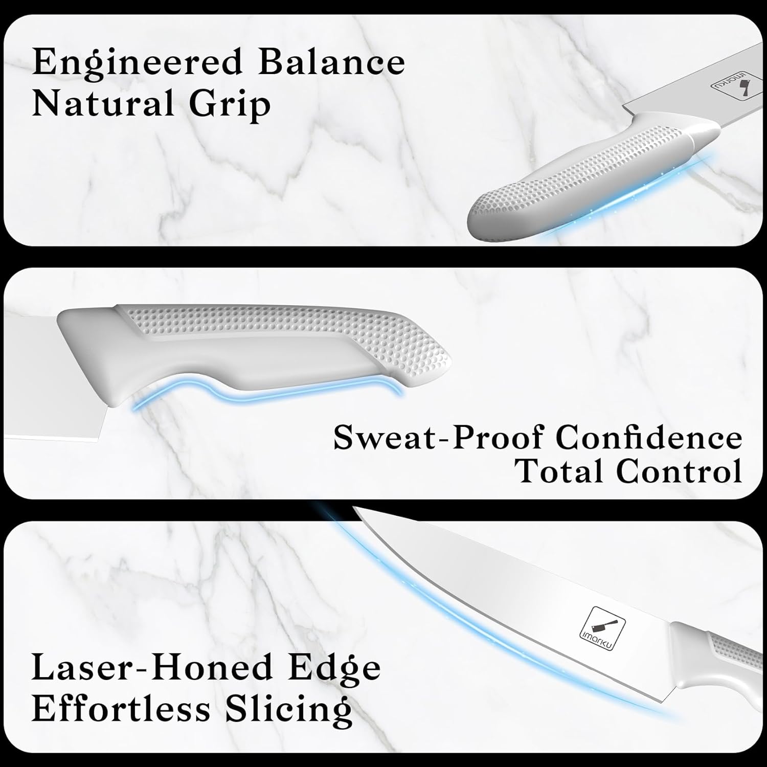 imarku Kitchen Knife Set, Japanese Knives Set For Kitchen, Stainless Steel Knife Set With Block, Deba Knives For Fish/Meat Slicing, Kitchen Essentials, White, Anti-Slip Handle, Dishwasher Safe