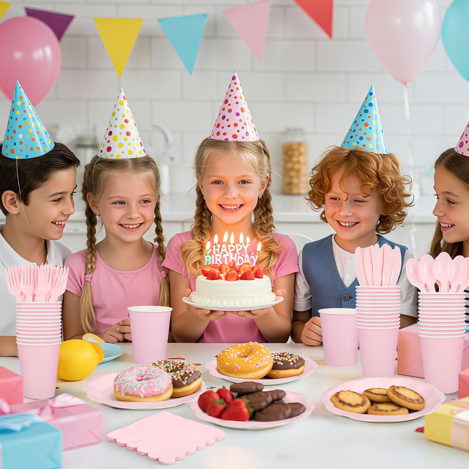 • 【Serves 25 Guests】You will receive 25 x 9 inch pink plates, 25 x 7 inch pink plates, 25 x paper cups, 25 x napkins, 25 x knives, 25 x forks, 25 x spoons, multiple quantity sets can meet your party needs and serve multiple guests
