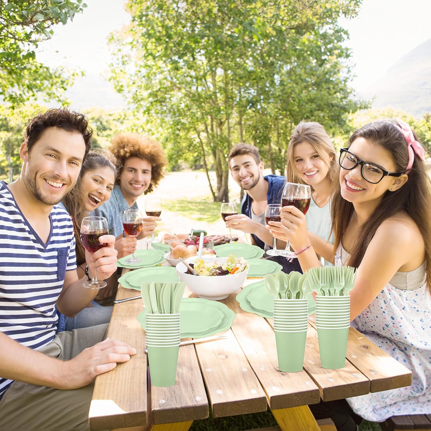 • 【Disposable Dinnerware】After the party, there is no need to wash the dishes, just throw them away directly, which helps you save a lot of cleaning time and allows you to focus more on enjoying a happy time with your family and friends. In addition, we provide a variety of color sets to choose from: sage green, pink, blue, and white to match your party theme. We also provide two sets of 175 pieces and 350 pieces to meet the needs of events of different sizes.