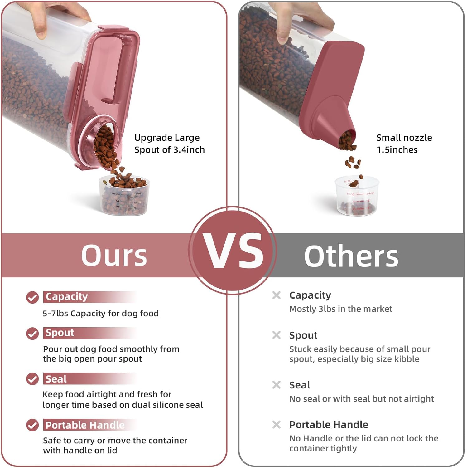 • WHAT YOU GET ? The dog food storage container comes with a 1-pack airtight pet food storage container with a clear measuring cup and an upgraded large spout for easy pouring of pet food at any time. This dog food storage containers can be a gift The perfect gift for any home.