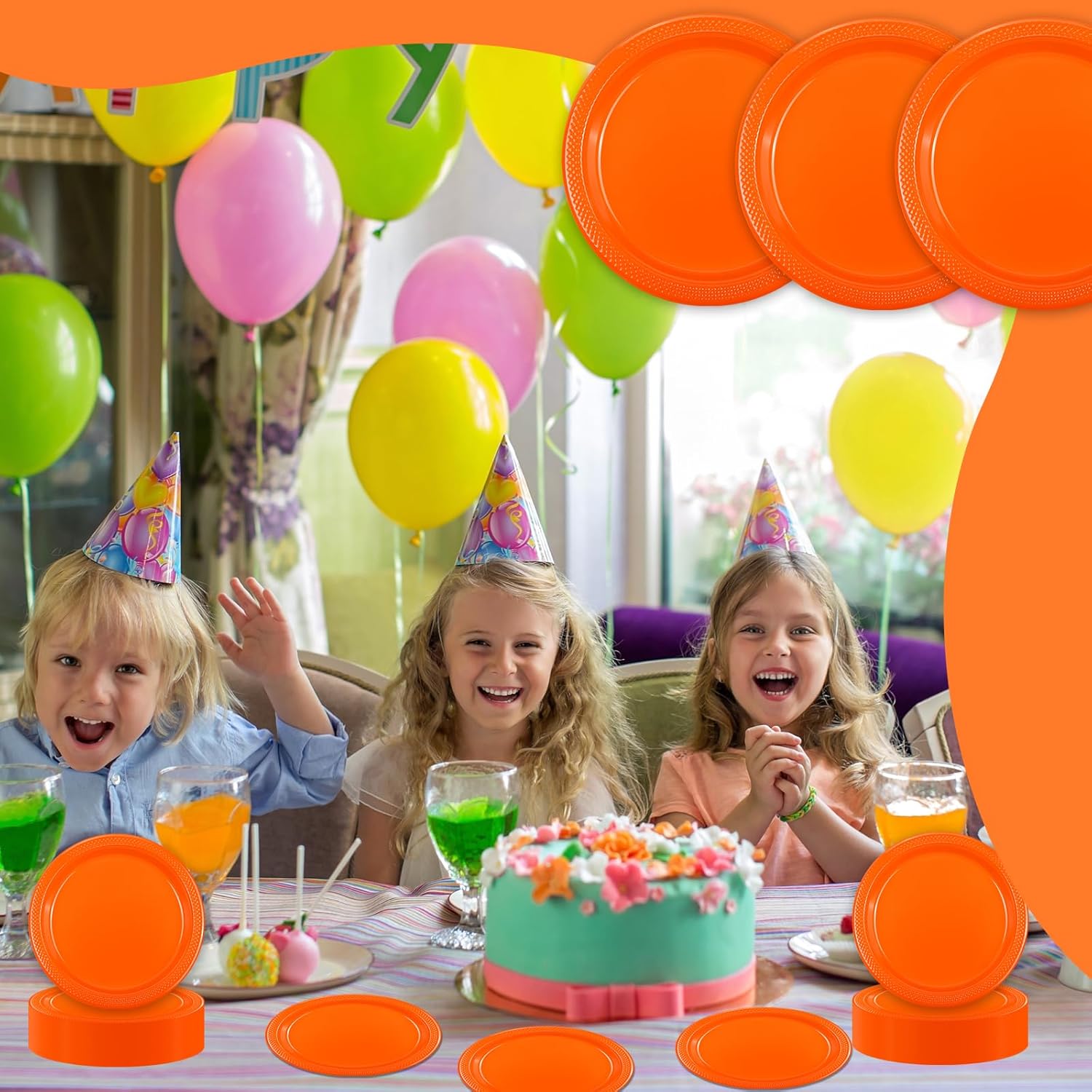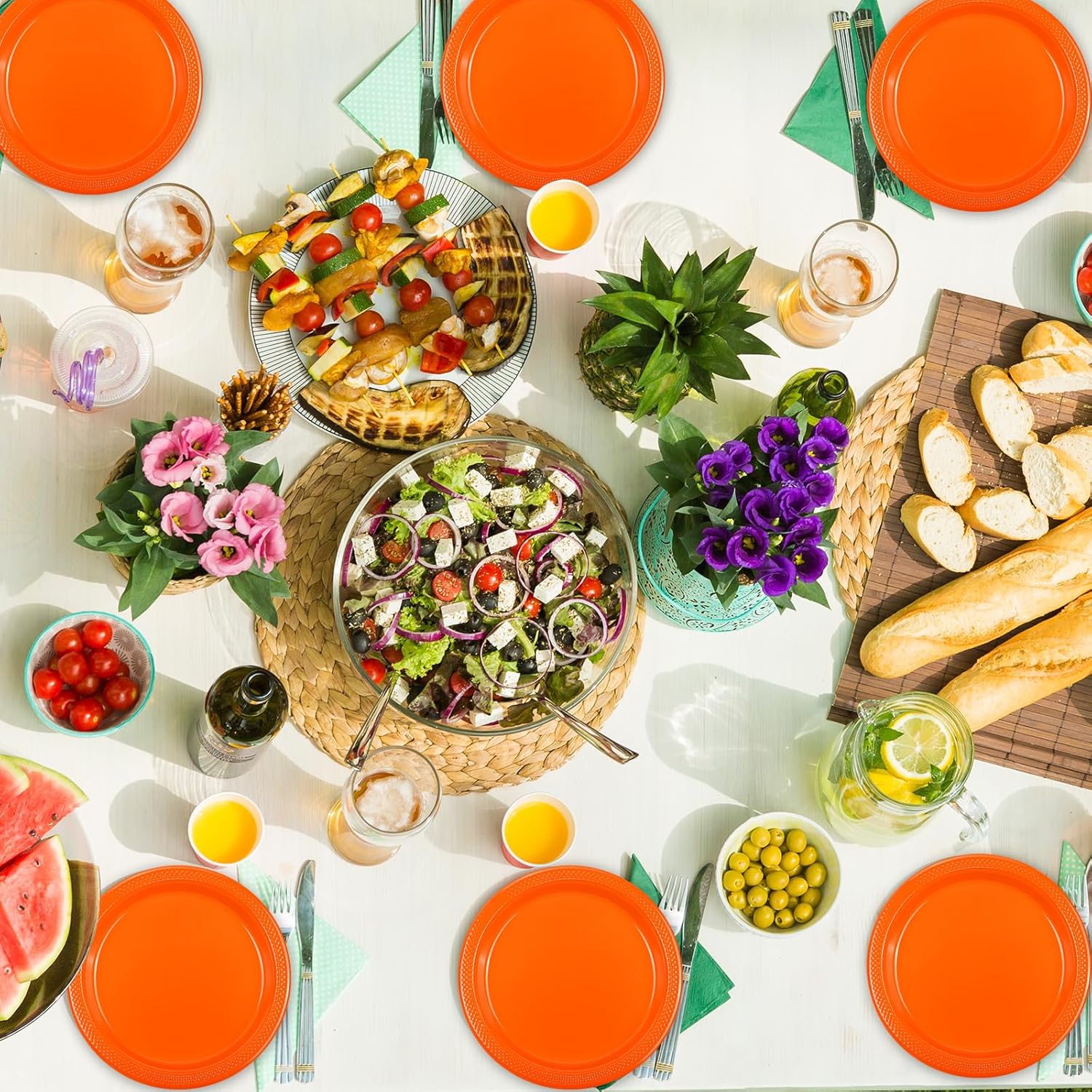 • Perfect for Large Party: Get a massive supply of 100 premium orange plastic plates disposable in one cost-effective package. This bulk pack is perfect for large gatherings, ensuring you have enough plates for all guests without worrying about running out.