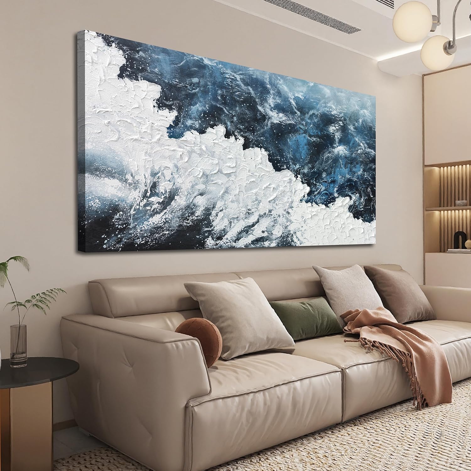 Canvas Wall Art Decor Large Blue White Wall Art Prints Abstract Canvas Wall Pictures for Living Room Oversized Artwork for Walls Coastal Modern Wall Art Decorations Bedroom Office Wall Art Decor 29" X 58"
