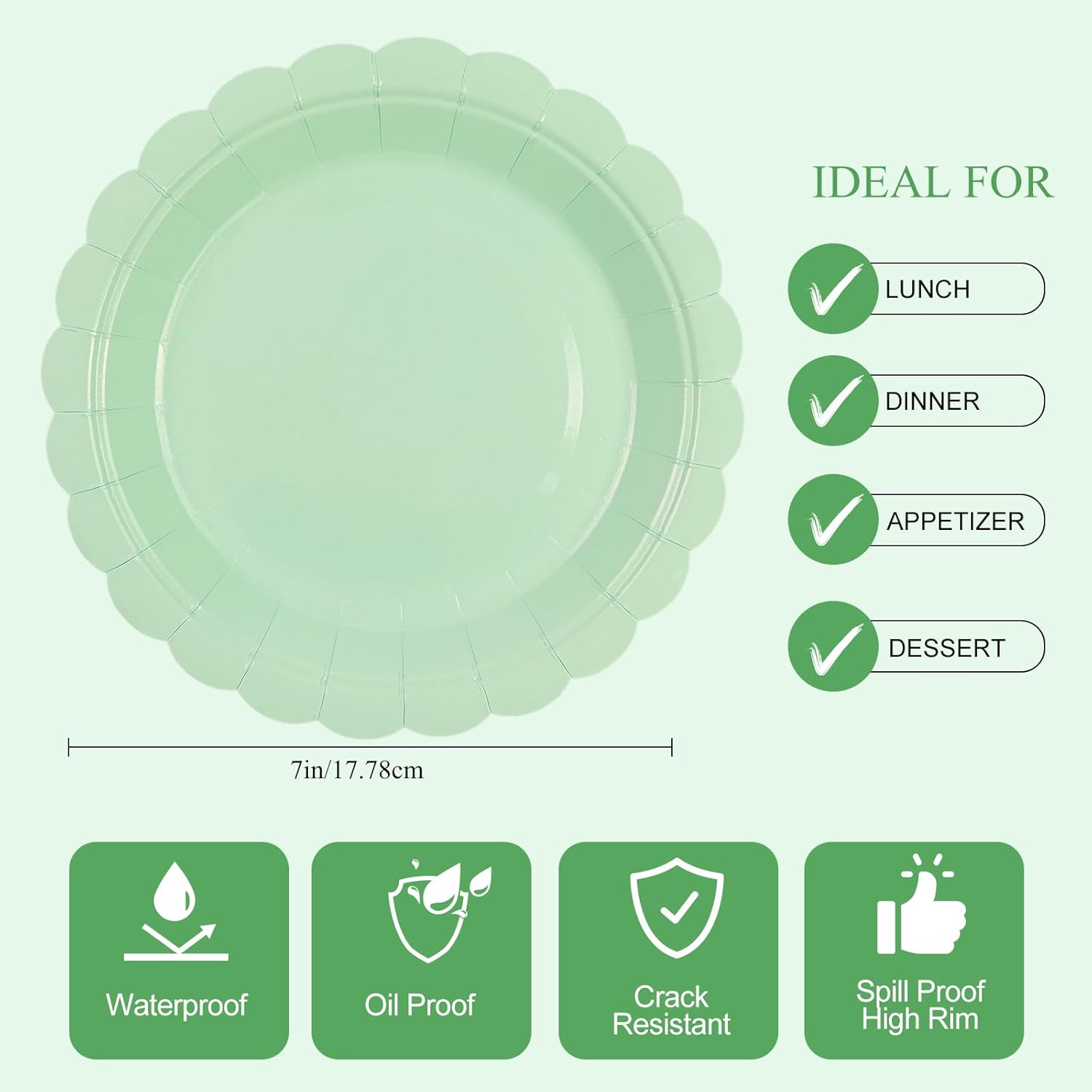 50Pcs Mint Green Paper Plates-7 Inch Solid Color Scalloped Disposable Birthday Dinnerware Set Disposable Dinner Party Supplies for Wedding Baby Shower Table Decor Pininc Fall Party Decor