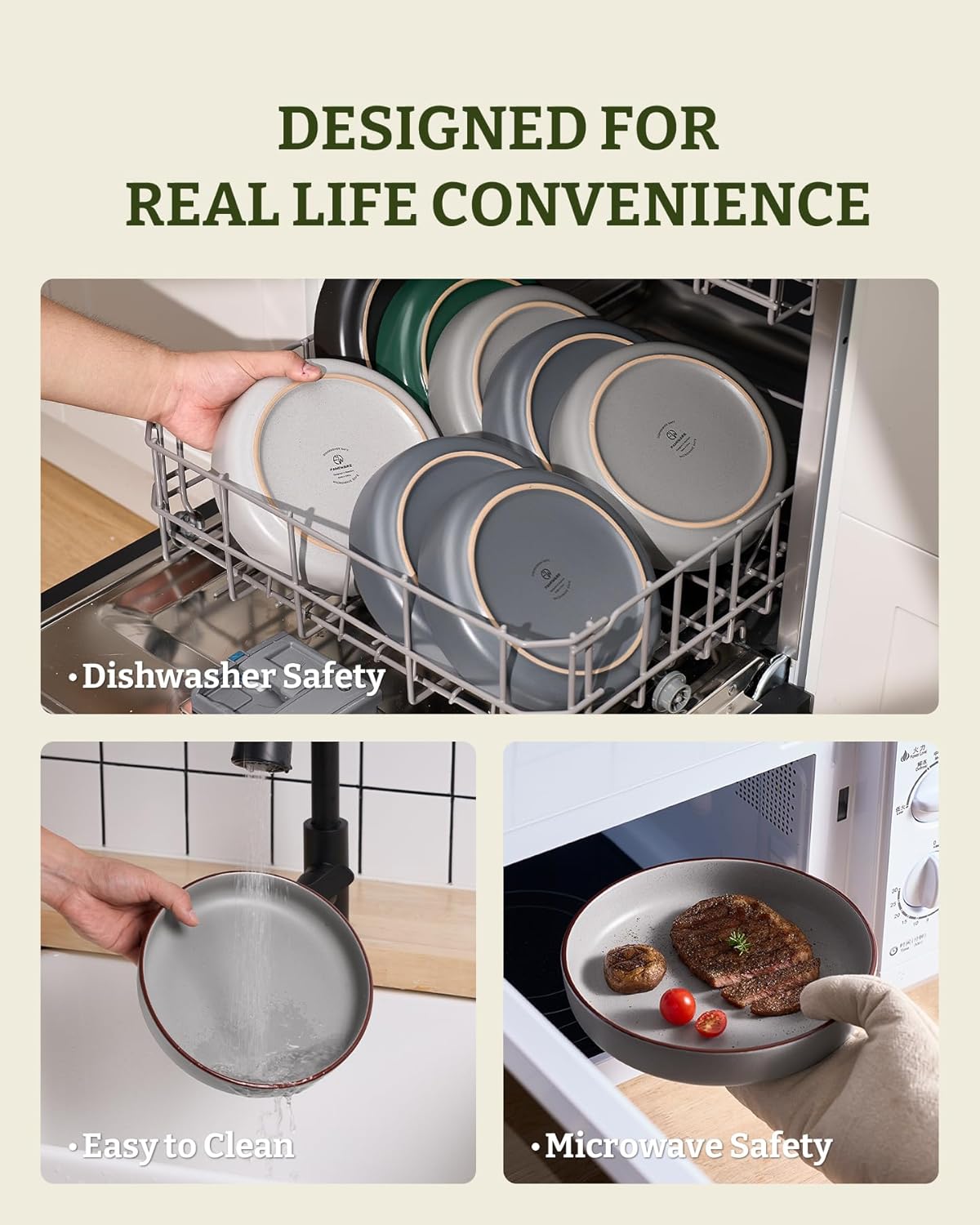 • 【MULTIPURPOSE BOWL SET】8.5 inches Dia, 33oz capacity, can hold both solids and liquids with ease, suitable for pasta, salads, soups, entrees, desserts and so on., it's definitely a perfect dinnerware set to serve a family breakfast, lunch or dinner
