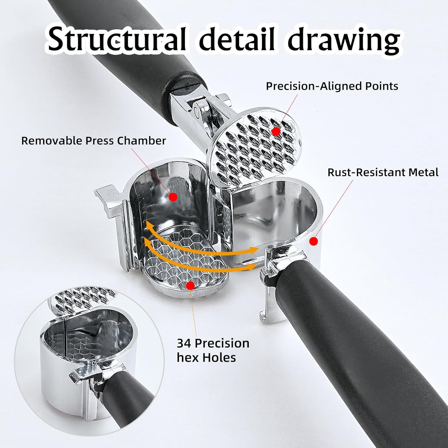 Garlic Press Mincer, Crusher Set with Removable Chamber - Ergonomic Handle, Dishwasher Safe, Easy to Clean for Kitchen, Cooking, Restaurants