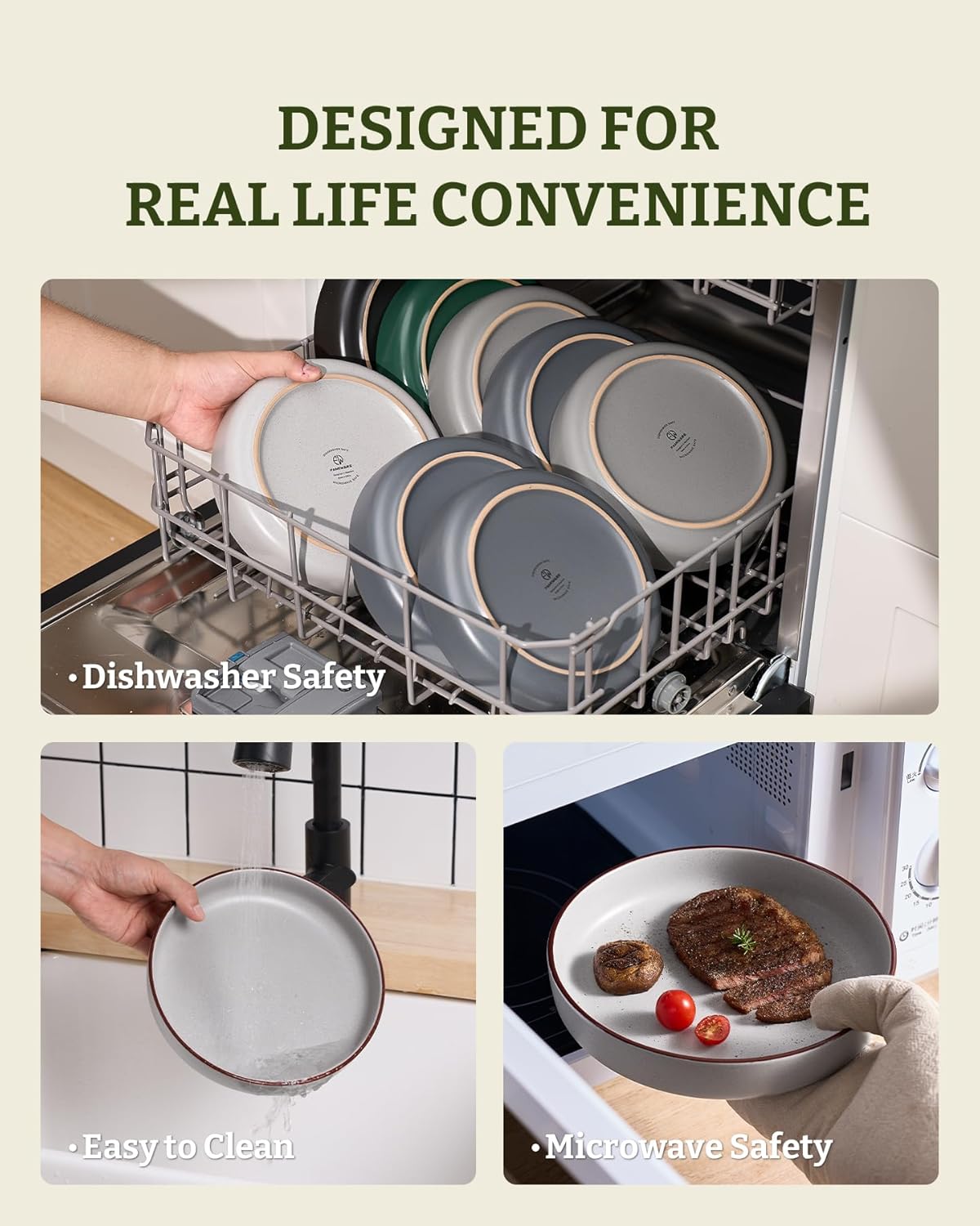 • 【MULTIPURPOSE BOWL SET】8.5 inches Dia, 33oz capacity, can hold both solids and liquids with ease, suitable for pasta, salads, soups, entrees, desserts and so on., it's definitely a perfect dinnerware set to serve a family breakfast, lunch or dinner