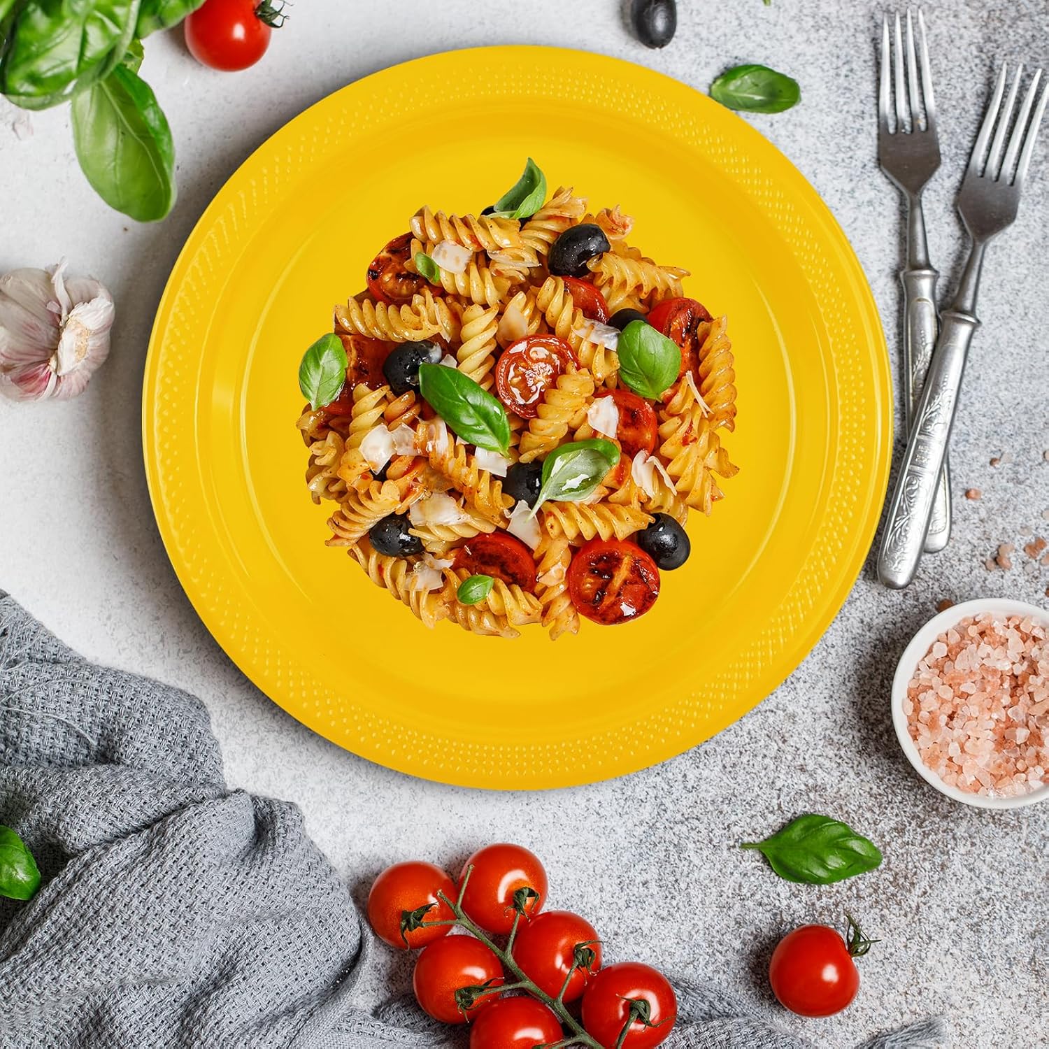 • Perfect for Large Party: Get a massive supply of 100 premium yellow plastic plates disposable in one cost-effective package. This bulk pack is perfect for large gatherings, ensuring you have enough plates for all guests without worrying about running out.