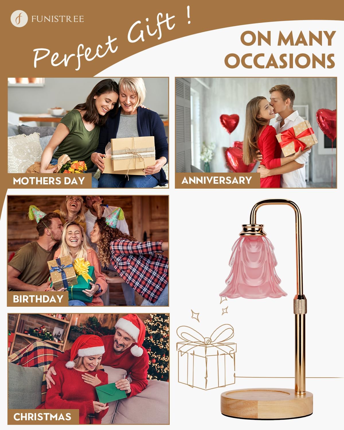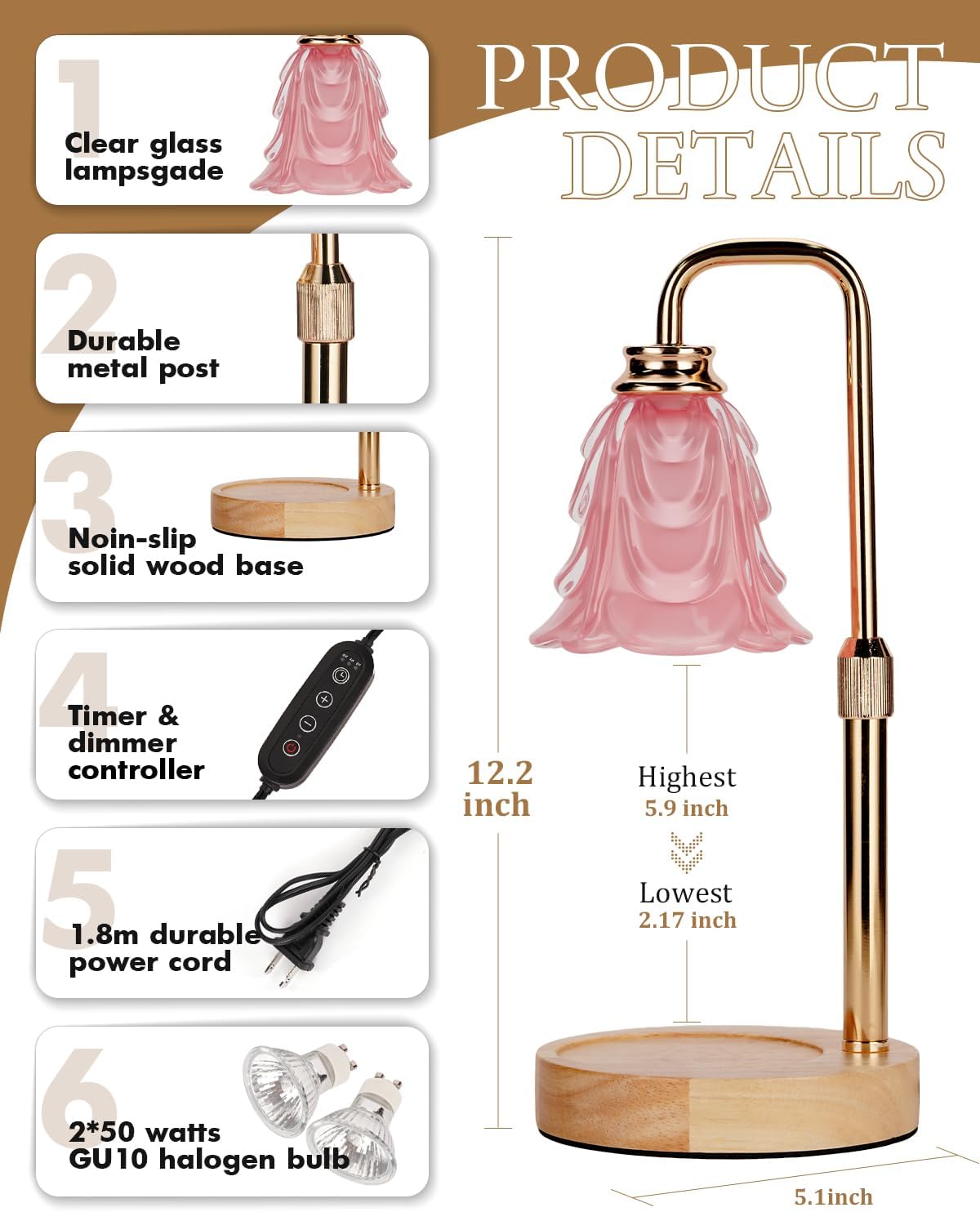 Small Candle Warmer Lamp with Timer, Adjustable Pink Flower Candle Heat Lamp, Unique Women's Gifts for Birthday, Dimmable Candles Heater, Christmas Gifts, Fashion Wax Warming Light with Wood Base