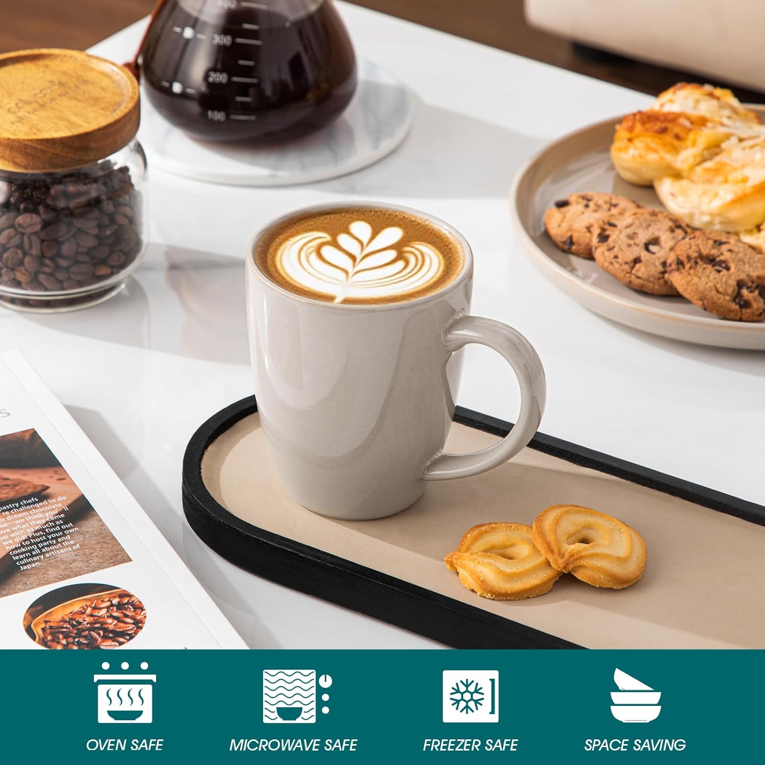 vancasso PLAYA Ceramic Coffee Mug Set of 6, 12 Oz Tea Cups with Handle for Latte, Tea, Cappuccino, Milk, Cocoa, Microwave&Dishwasher Safe, Grey