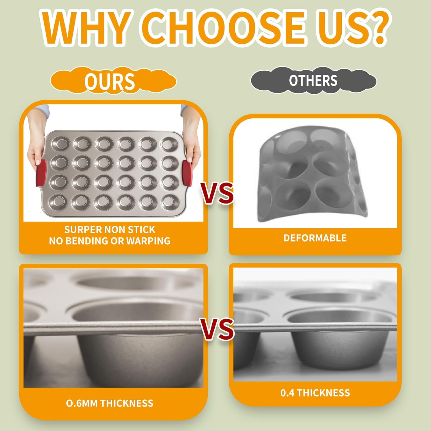 • Space-saving Design - These muffin tins nonstick 6 features a stackable tray design, making it easy to store. PFOA, PFOS, and PTFE free, it offers a safe and reusable quality kitchenware for baking. Ideal for home and commercial kitchens.