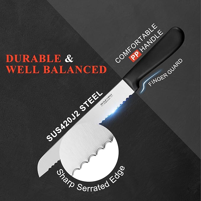 • BOLEXINO 8 Inch Serrated Knife for Homemade Bread With Sheath, Wide Wavy Edge Blade For Bread Cake Cutting Slicing, High-Carbon Japanese Stainless Steel