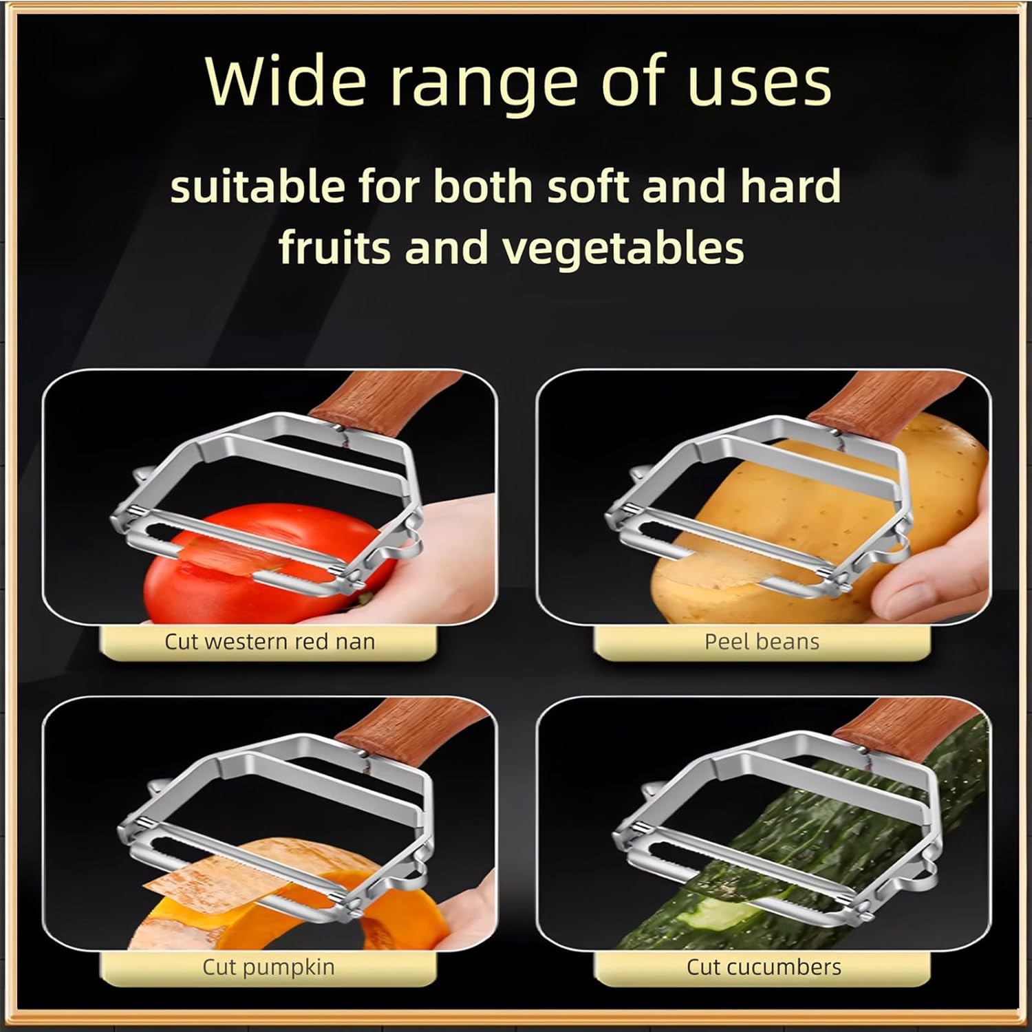 • Comfortable Grip for All Users:Built with a premium stainless steel blade and ergonomic non-slip wood handle for comfort and sturdiness. This kitchen peeler tool is labor-saving, rust-resistant, accommodating both right and left-handed individualsand designed for long-lasting use in any kitchen