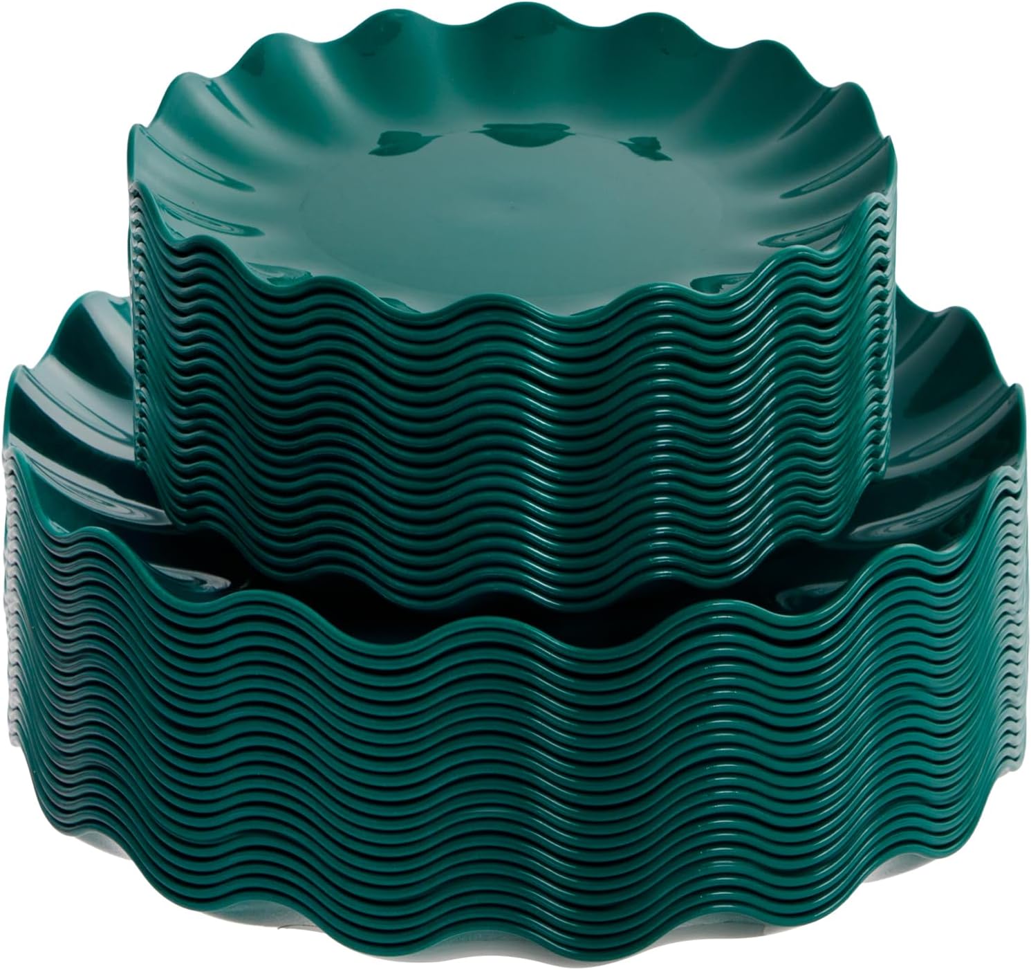 LIYH 50 Pcs Dark Green Plastic Plates Reusable Christmas Plastic Plates Green Christmas Plate Unbreakable Holiday Dinnerware Set Fancy Scalloped Plate Dishwasher Safe BPA Free (25Guests)
