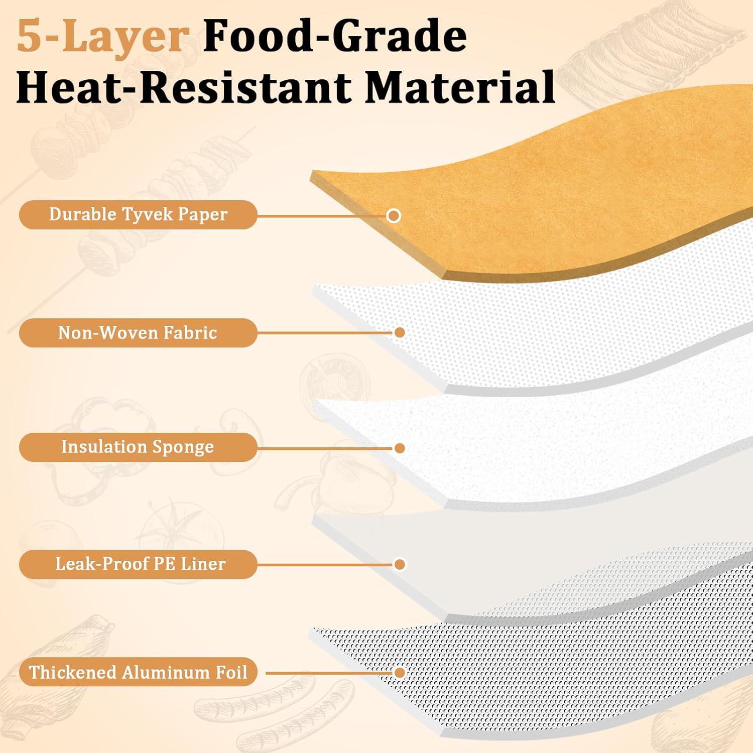 • 1.【Lock In Heat & Juiciness】 Keep your brisket, pork shoulder, or turkey perfectly warm and juicy with this meat blanket / BBQ blanket for resting meat.