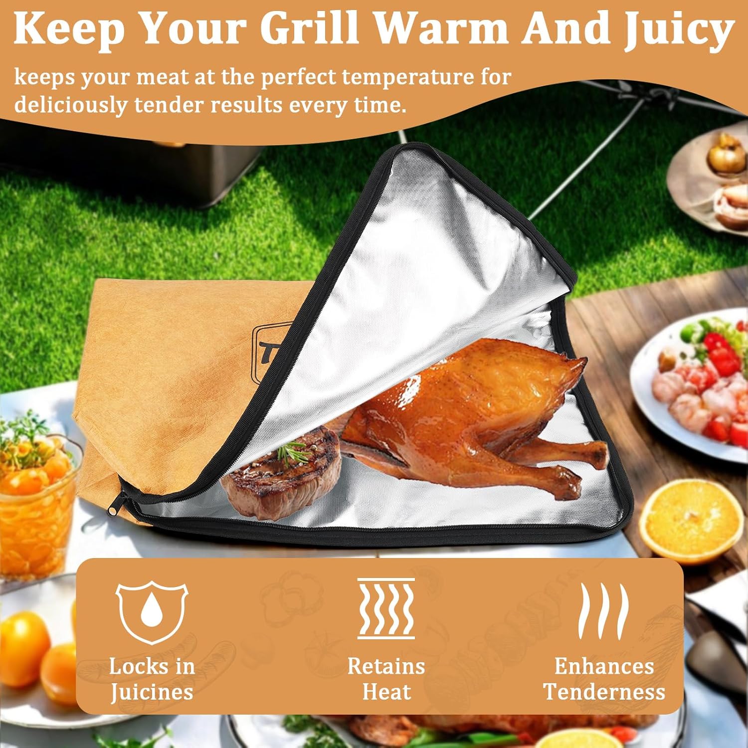 BBQ Blanket for Resting Meat & BBQ Meat Blanket|21-Inch Wide-Mouth Insulated Meat Resting Bag for Brisket, Pork Shoulder, Turkey & Beef, Leak-Proof, Easy-Clean, Foldable, Camping & Gift for Men
