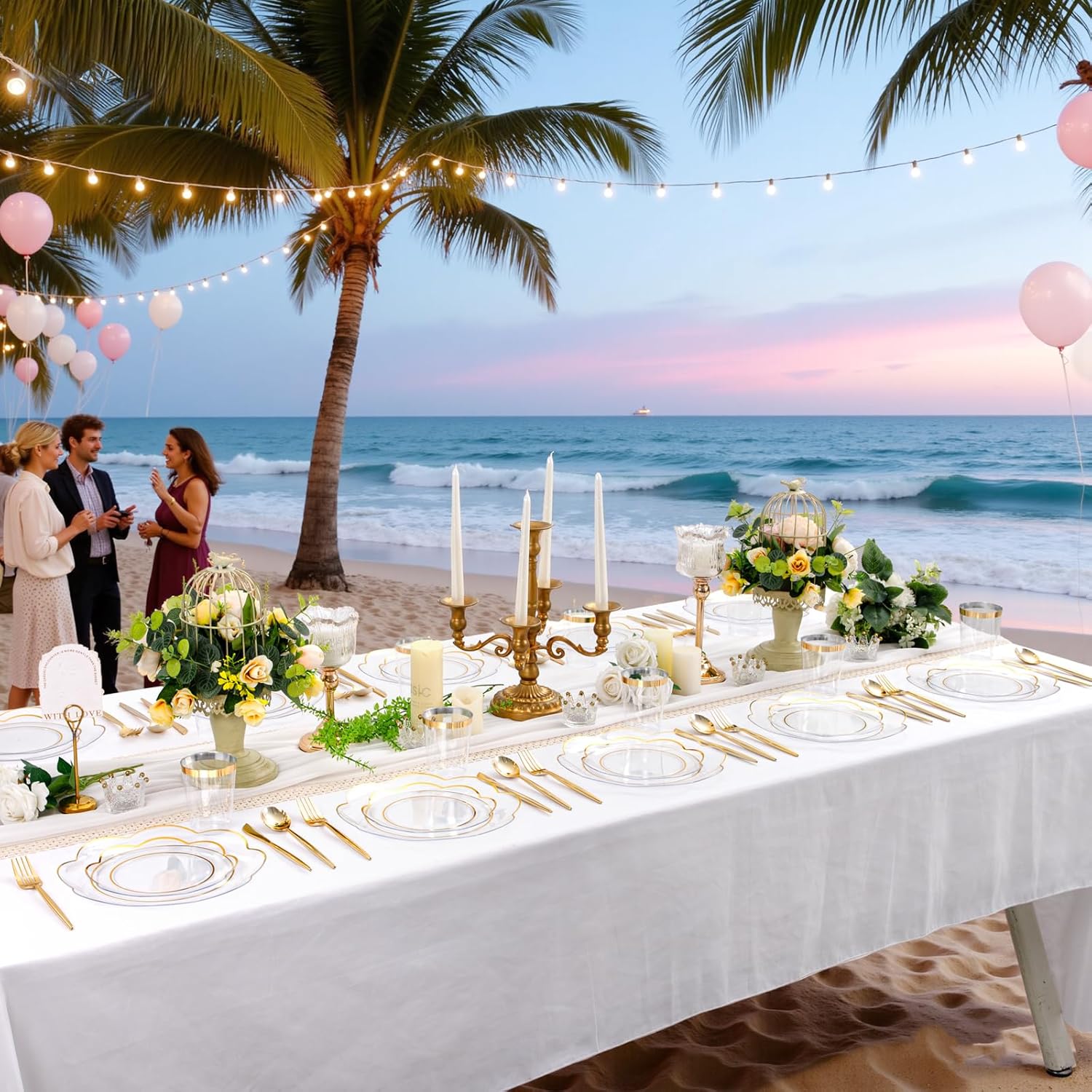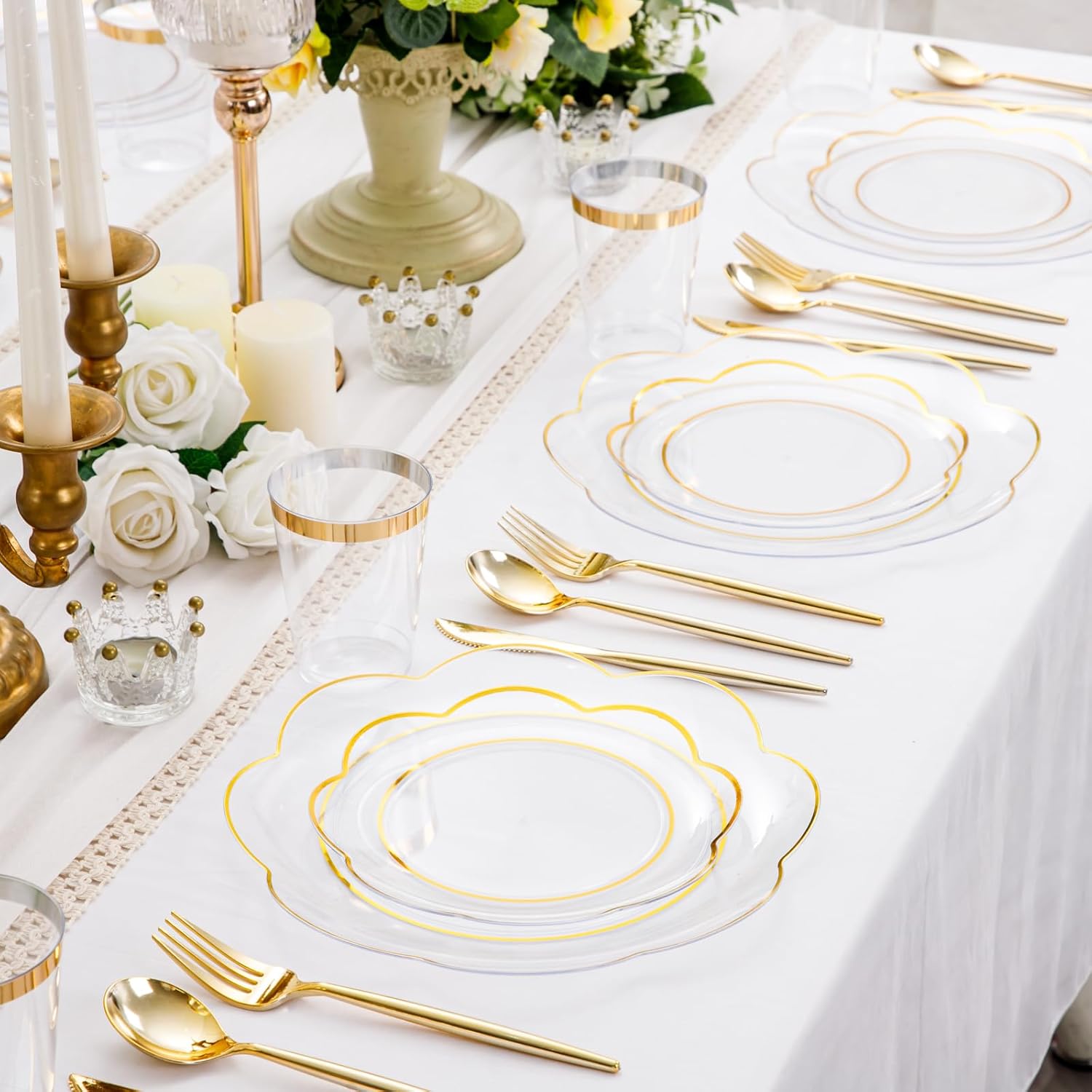 • ejonirinjonir EI 180pcs Clear Plastic Plates with Gold Plastic Silverware, Plate for Party,Clear Dinnerware Set,Heavy Duty Plate for Wedding,Biethday