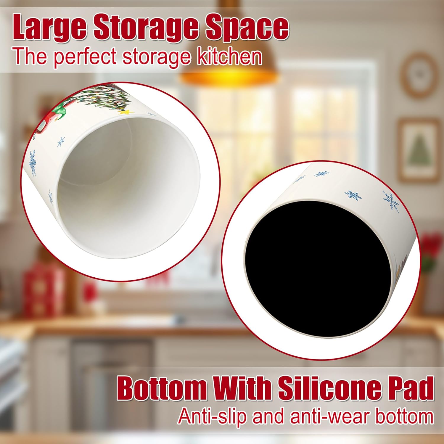 • Quality Material And Craftsmanship: This Christmas kitchen utensils is made of high standard ceramic material, which is durable and easy to clean. The surface treatment is delicate, warm to the touch,to ensure that long-term use is still as good as new, to provide solid protection for your storage needs, add Christmas atmosphere to your kitchen