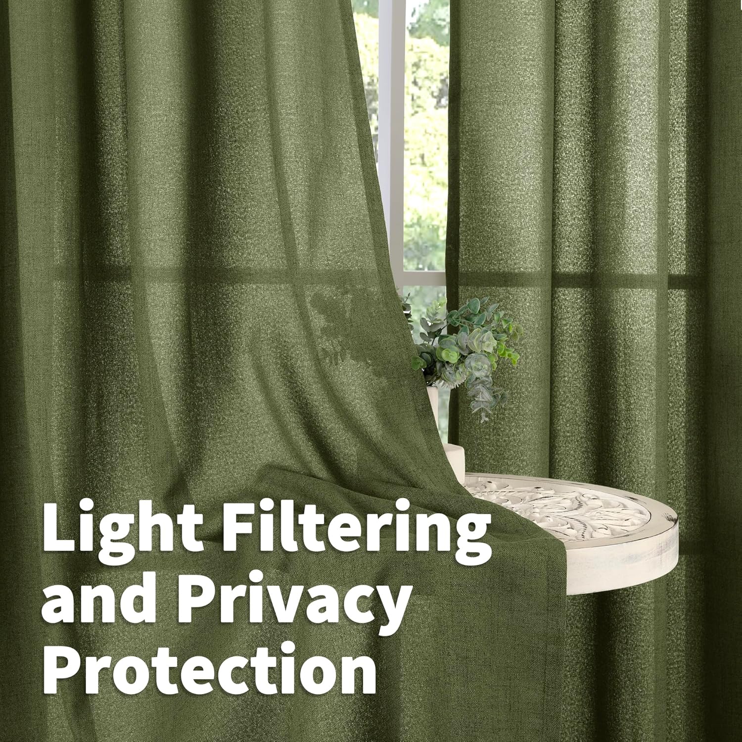 YoungsTex Olive Linen Curtains 68 Inch Length for Living Room, Light Filtering Window Drapes with Bronze Grommet Textured Privacy for Bedroom Farmhouse Decorative, 52 x 68 Inch, 2 Panels