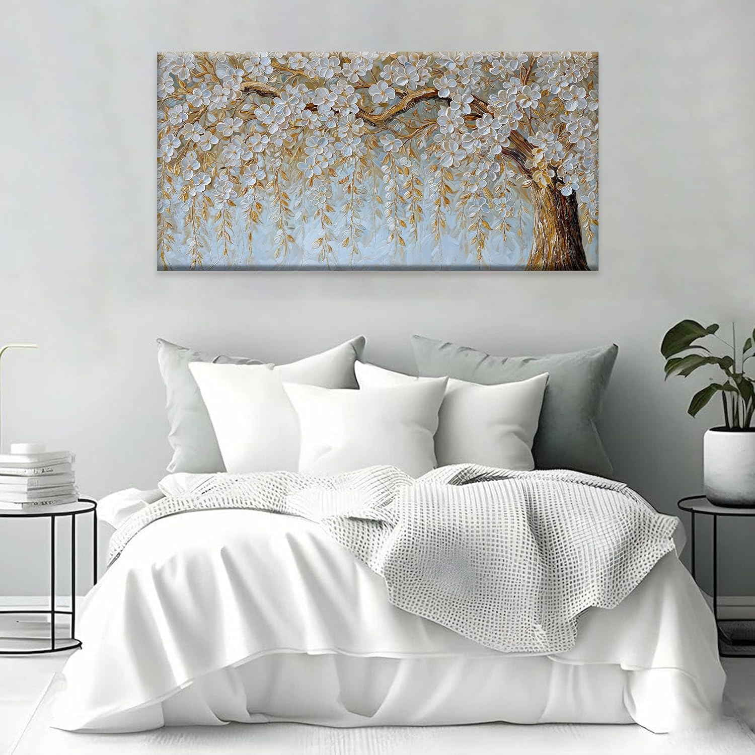 Wall Art Living Room Flower White Tree Wall Art Modern Canvas Art Wall Decor Home Wall Decor Suitable Picture For Bedroom Apartment Office Can Be Hung 24" X 48"