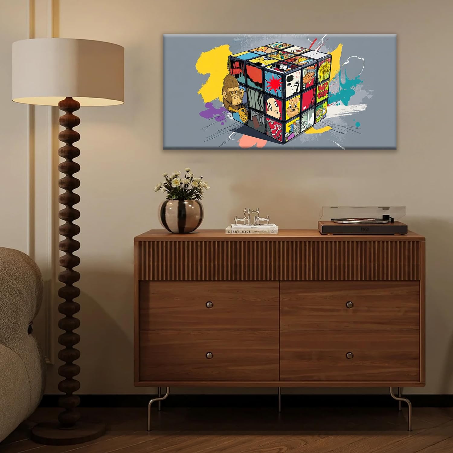Abstract Wall Art Modern Abstract Wall Decor Multicolor Graffiti Cube Canvas Art Wall Decor Painting Picture For Bedroom Office Home Wall Decoration Artwork 20"X 40"Ready To Hang