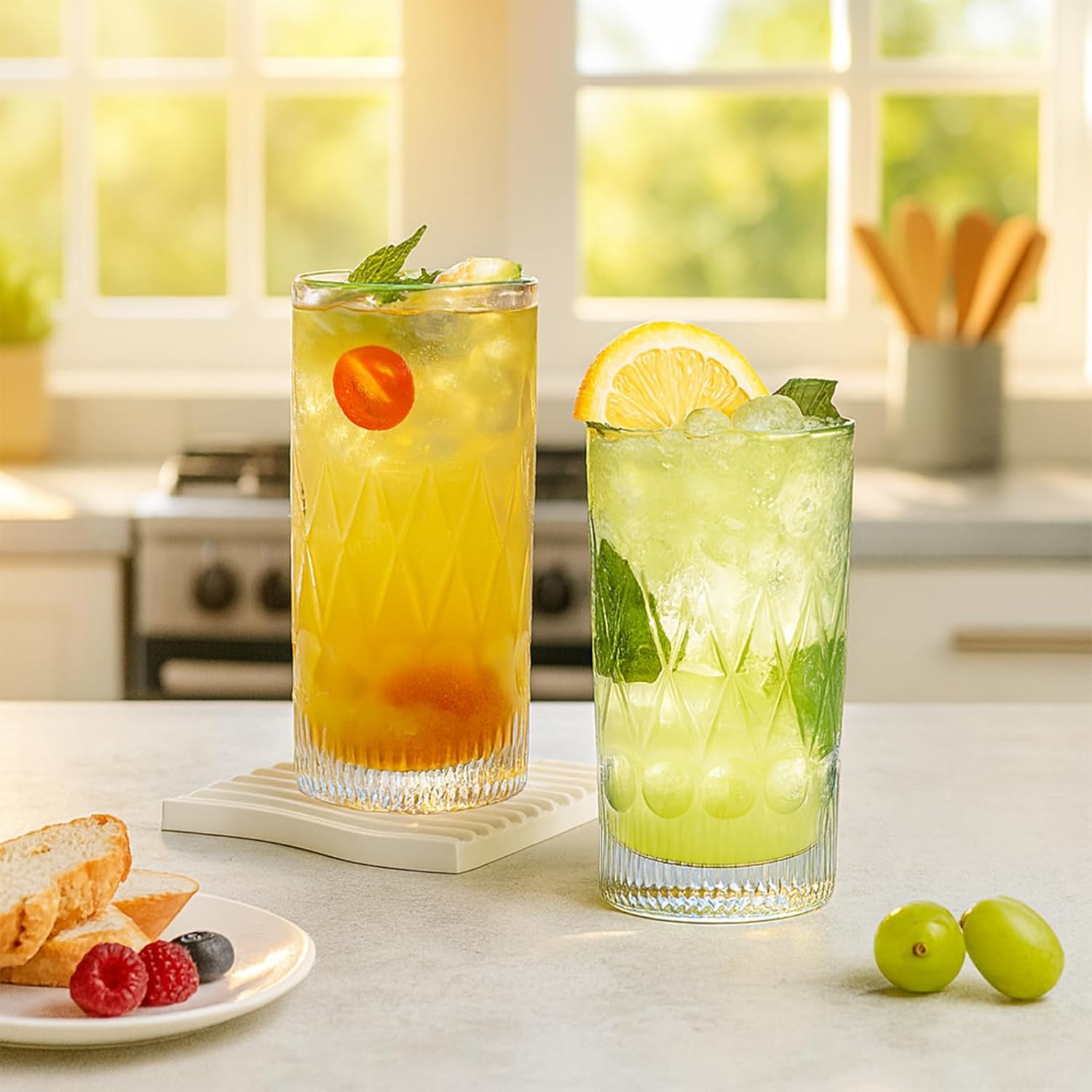 • Durable and Safe: Made from crystal-clear glass, this set is designed to resist breakage, chipping, and scratching. Enjoy your favorite drinks in style with a set built to last.