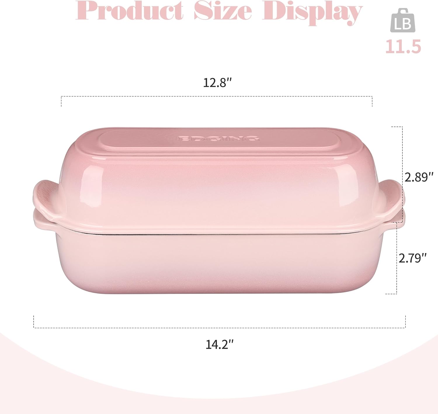 Enameled Cast Iron Loaf Pan with Lid, Dutch Oven Bread pan for Homemade Sourdough Bread Baking, 12.5x5.5 inch, 5qt, Pink
