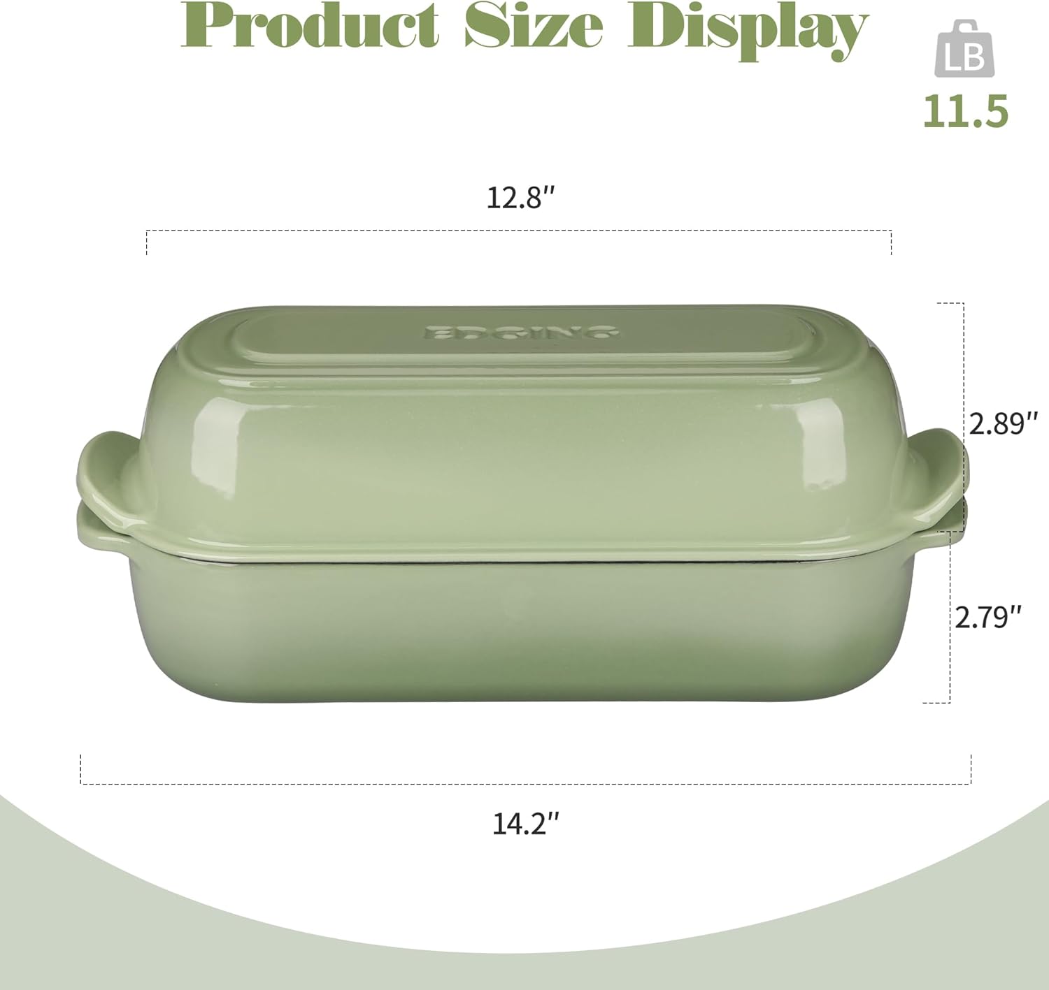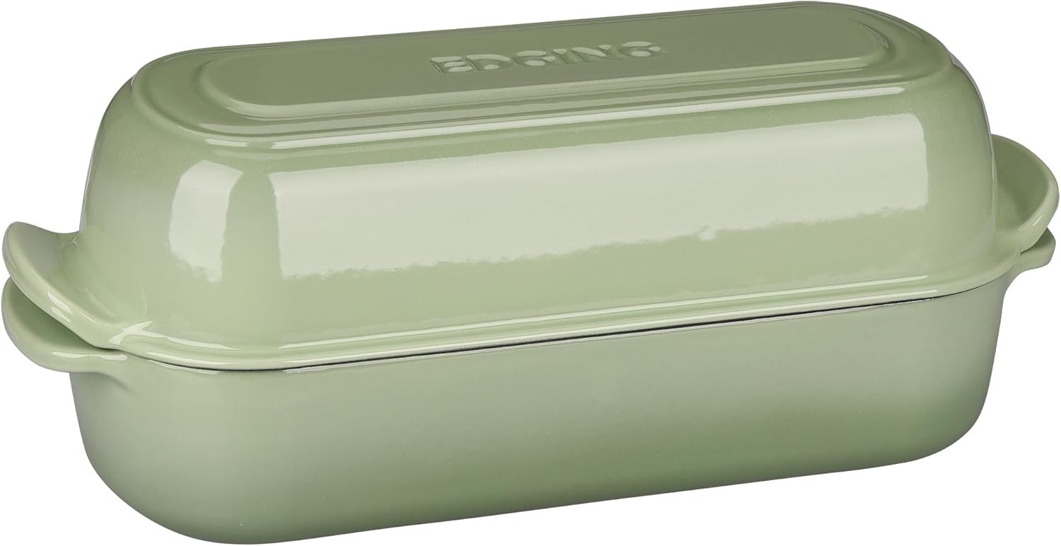 Enameled Cast Iron Loaf Pan with Lid, Dutch Oven Bread pan for Homemade Sourdough Bread Baking, 12.5x5.5 inch, 5qt, Pistachio Green
