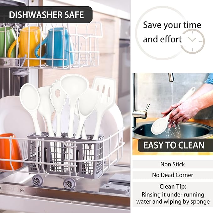 • 【EASY CLEAN】One-piece seamless design come with no dead corner to avoid the buildup of food, Silicone surface make it released food easily, Easy clean by hand-rinsing utensil under running water and wipe by sponge or dishcloth, Rust free and warp resistant, Dishwasher safe to save your effort and time