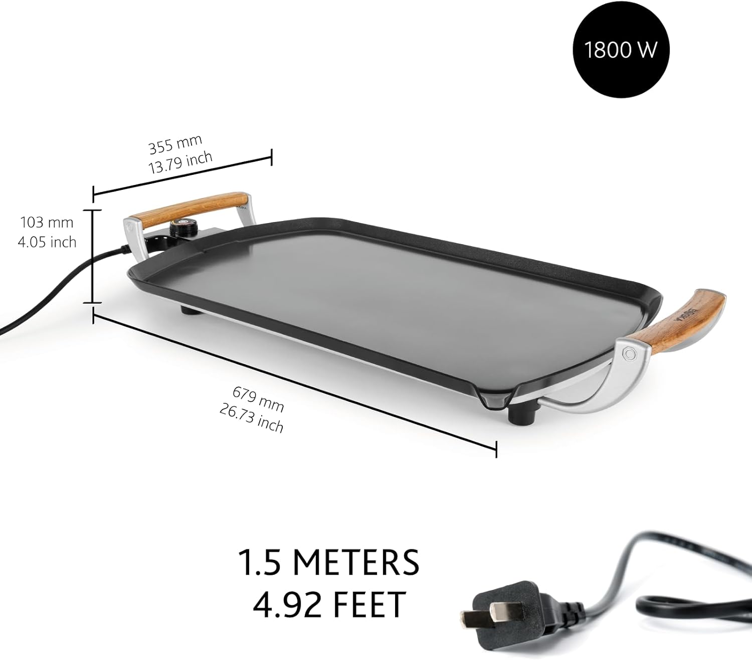 • FAST, EVEN HEATING SURFACE: The sleek aluminum plate with rounded corners heats evenly and gives you a spacious 14 x 22 inch surface for all your meals.