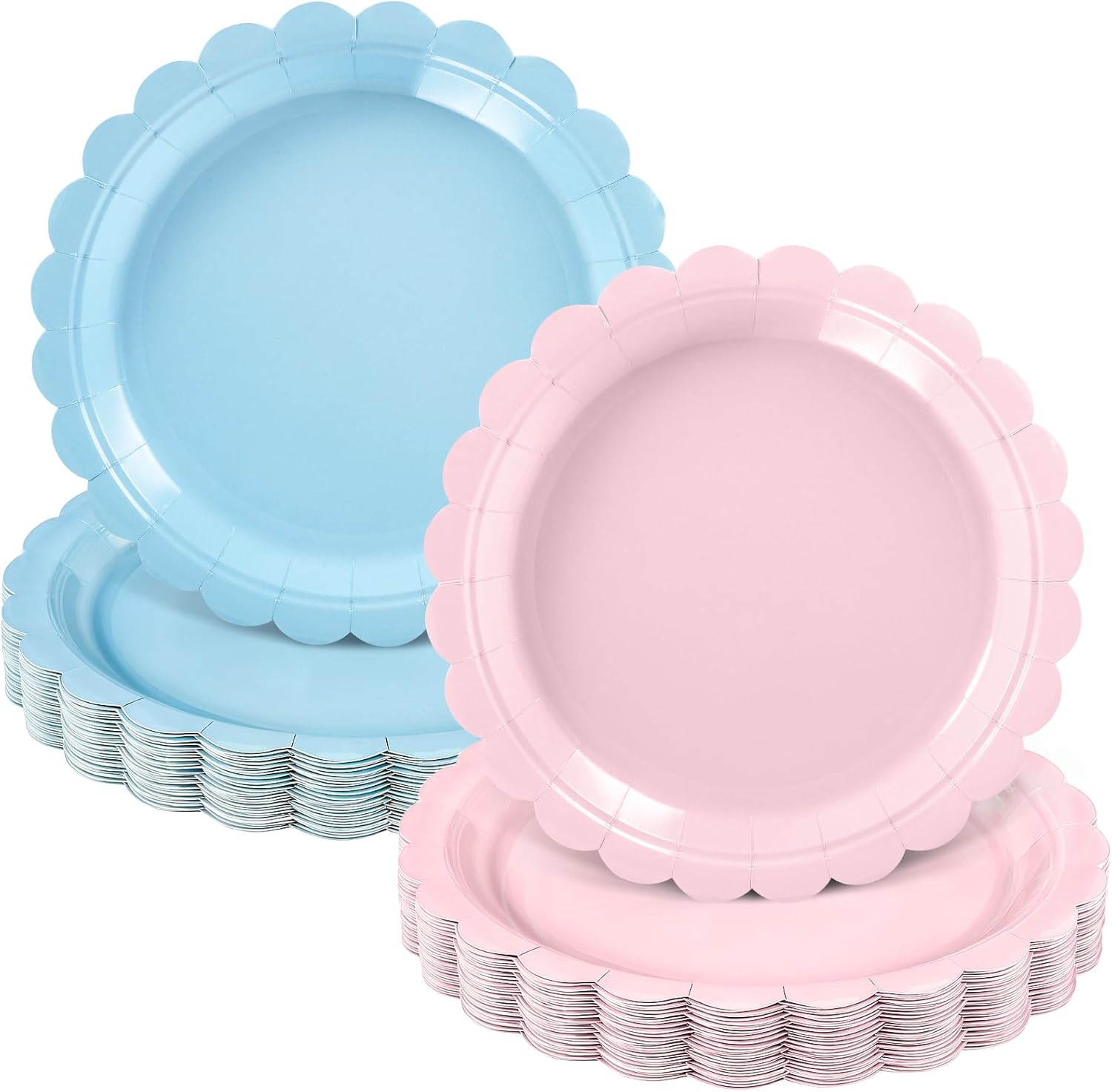 • Cute Scalloped Rim Design: The edges of pink and blue plates are designed with scalloped pattern, which highlights cute and elegance of plates, which can set off the party atmosphere