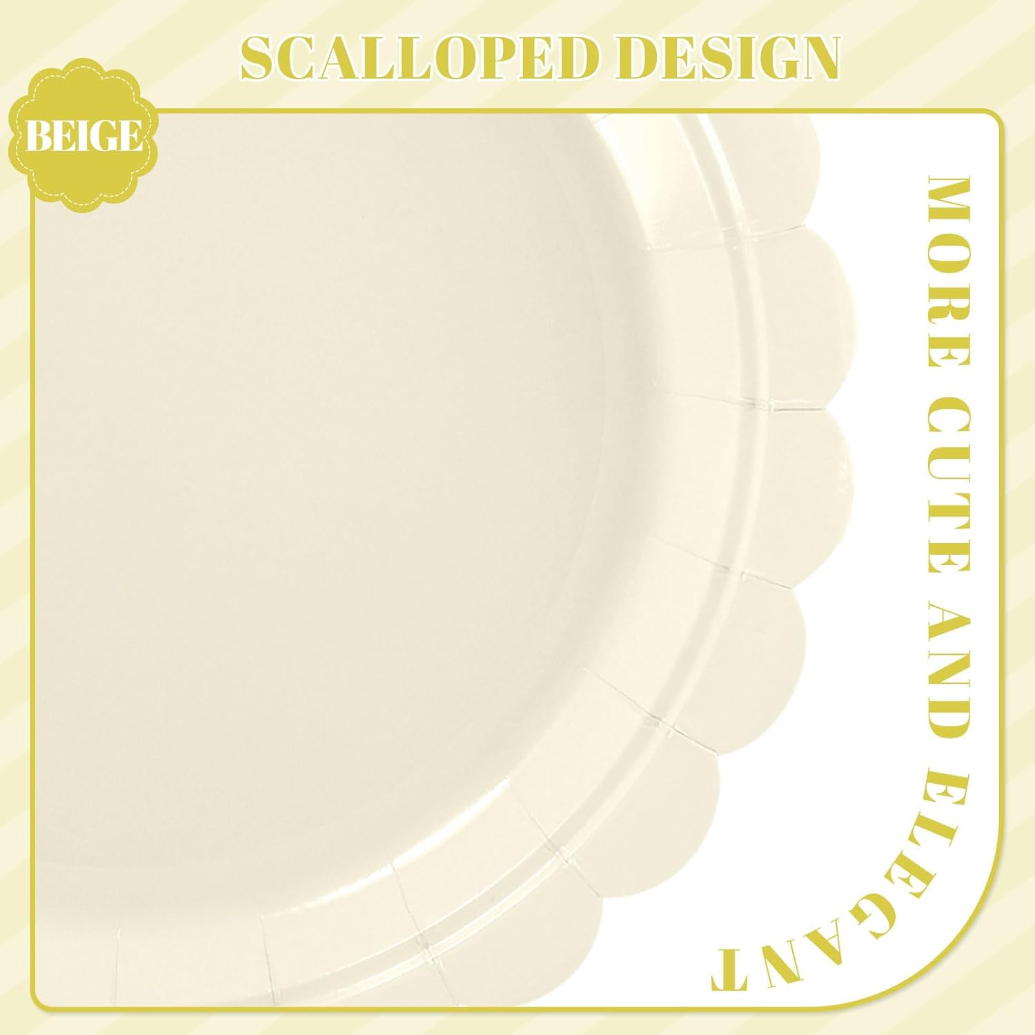 • Cute Scalloped Rim Design: The edges of beige plates are designed with scalloped pattern, which highlights cute and elegance of plates, which can set off the party atmosphere