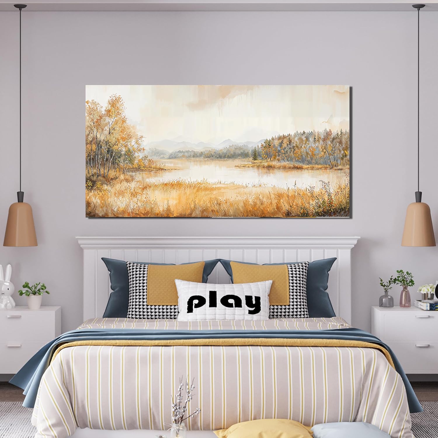 • 【Perfect Home Room Wall Decoration Idea】This canvas wall art decor is perfect for adding a decorative touch to any room, great idea for home wall decoration, such as for living room, bedroom, kitchen, game room, lakeside cabin, guest room, office, etc.