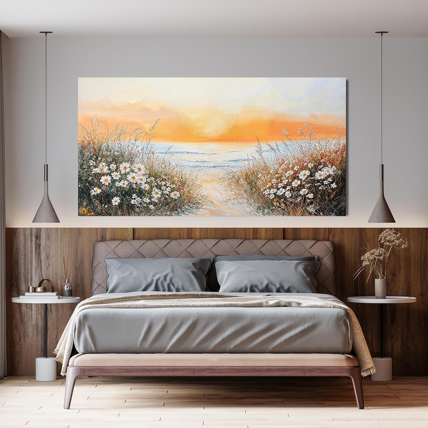 Canvas Oversized Wall Art Decor Wall Pictures for Living Room Artwork for Walls Large Coastal Beach Wall Art Prints Canvas Art Wall Decor Vintage Landscape Wall Art Bedroom Home Wall Art Decor 29" X 58"