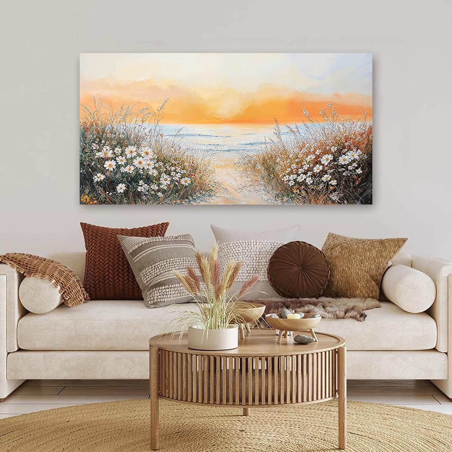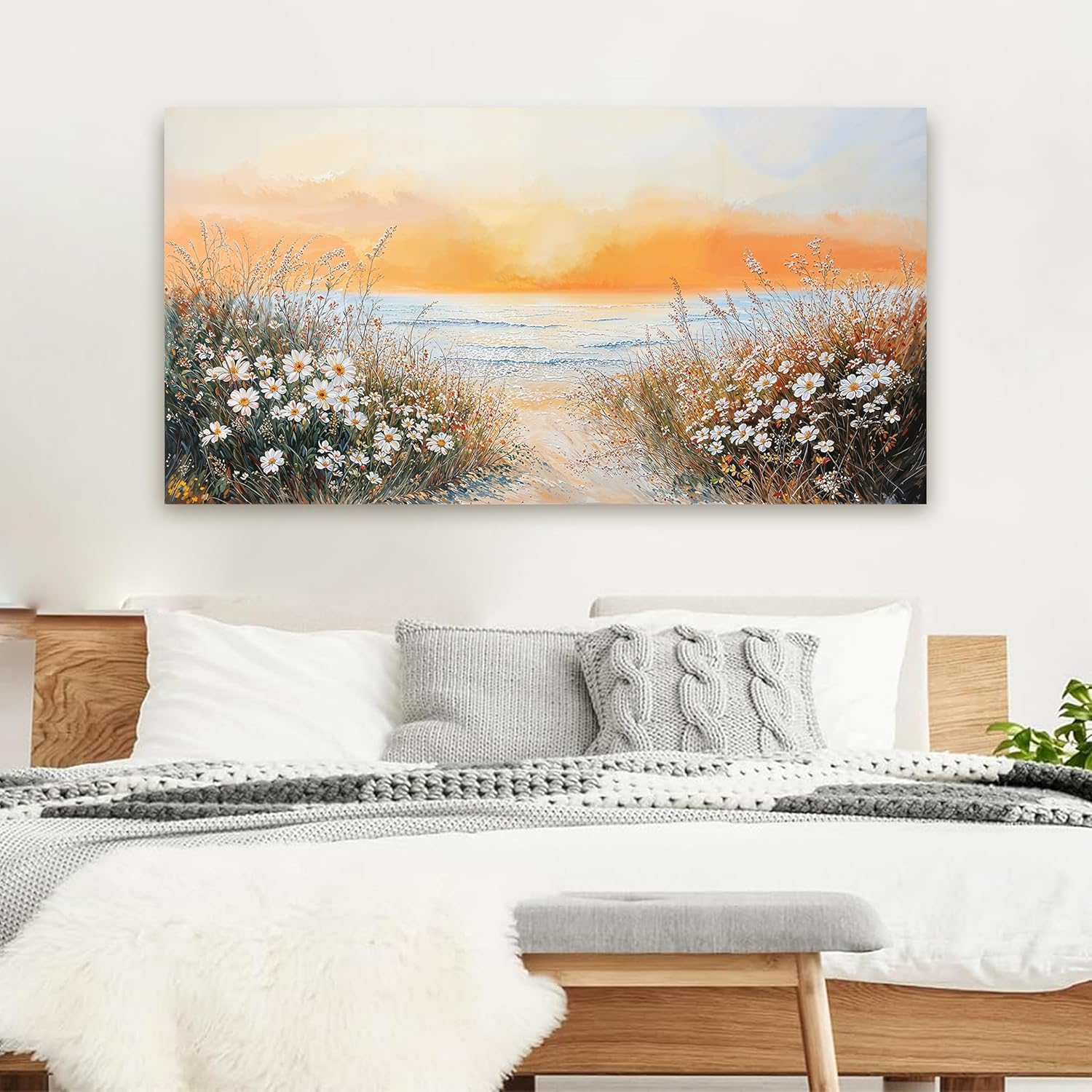 Canvas Wall Art Decor Wall Pictures for Living Room Artwork for Walls Large Coastal Beach Wall Art Prints Canvas Art Wall Decor Vintage Landscape Wall Art Decorations Bedroom Home Wall Art Decor 24" X 48"