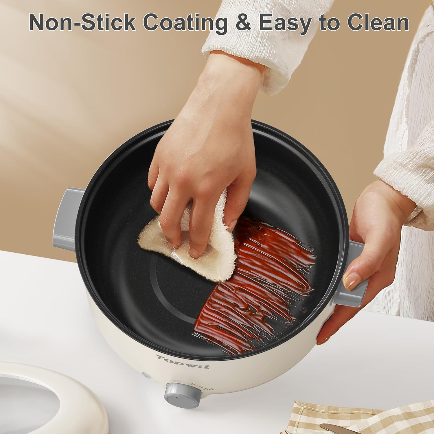 TOPWIT Electric Pot, 3L Hot Pot Electric, Rapid Noodles Cooker, Non-Stick Frying Pan, Multifunctional Electric Hot Pot for Steak, Egg, Ramen, Soup, Shabu Shabu Pot for Camping, RVs, Party, Beige