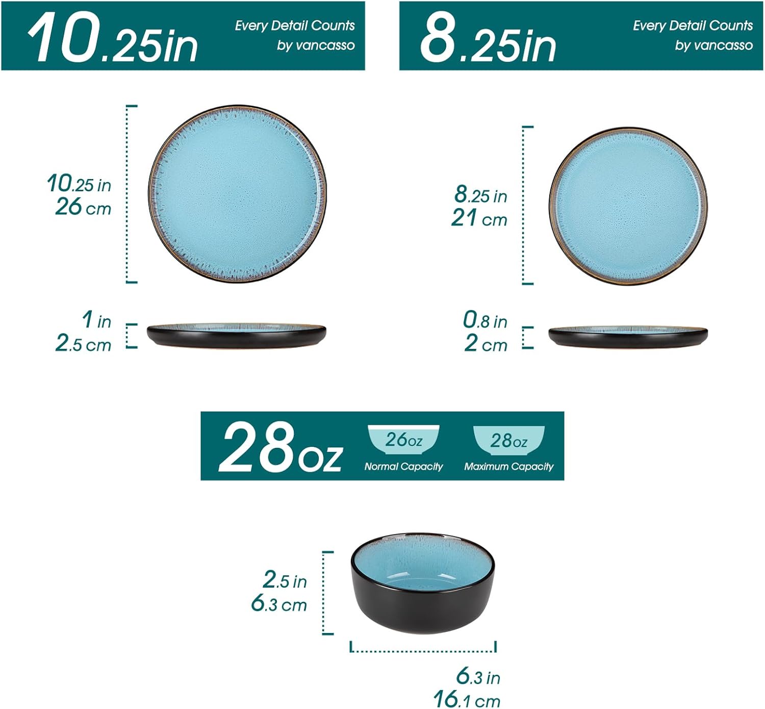 • Microwave & Dishwasher Safe – Thanks to its high-fired (2548°F+) mineral glaze, vancasso plates and bowls sets features an ultra-stable, moisture-resistant surface. The dense glaze structure prevents thermal shock and dulling or chemical wear, outperforming regular ceramics in long-term durability.