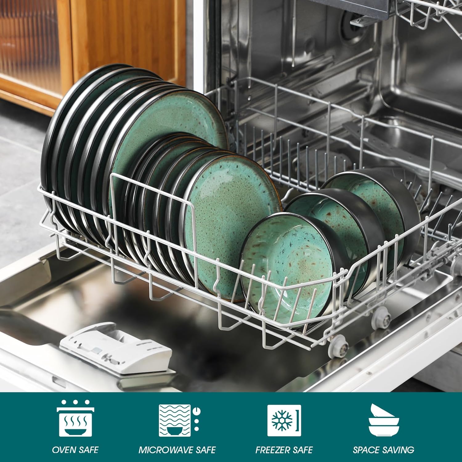 • Microwave & Dishwasher Safe – Thanks to its high-fired (2548°F+) mineral glaze, vancasso plates and bowls sets features an ultra-stable, moisture-resistant surface. The dense glaze structure prevents thermal shock and dulling or chemical wear, outperforming regular ceramics in long-term durability.