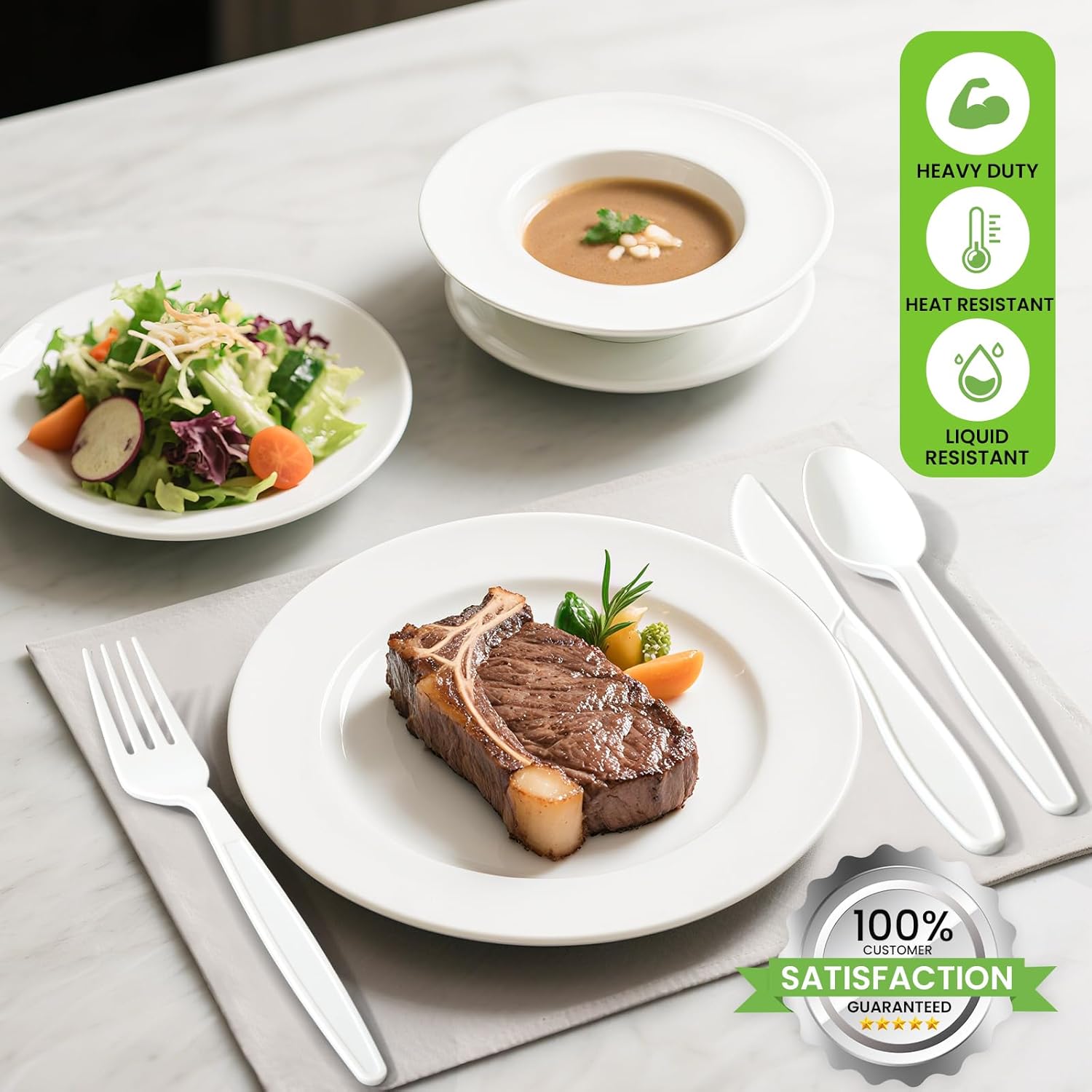 • 100% SATISFACTION GUARANTEE: We are highly confident in the premium quality of our disposable cutlery set. We love using them, and we know you will love them too! If you have any issues with your purchase, don't hesitate to get in touch with us directly within 30 days for a full replacement or refund.
