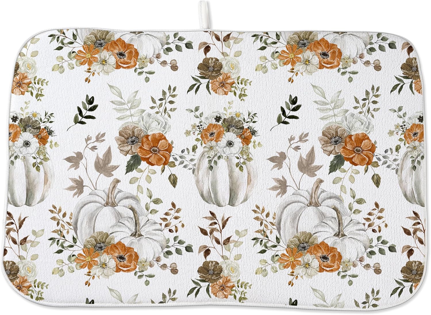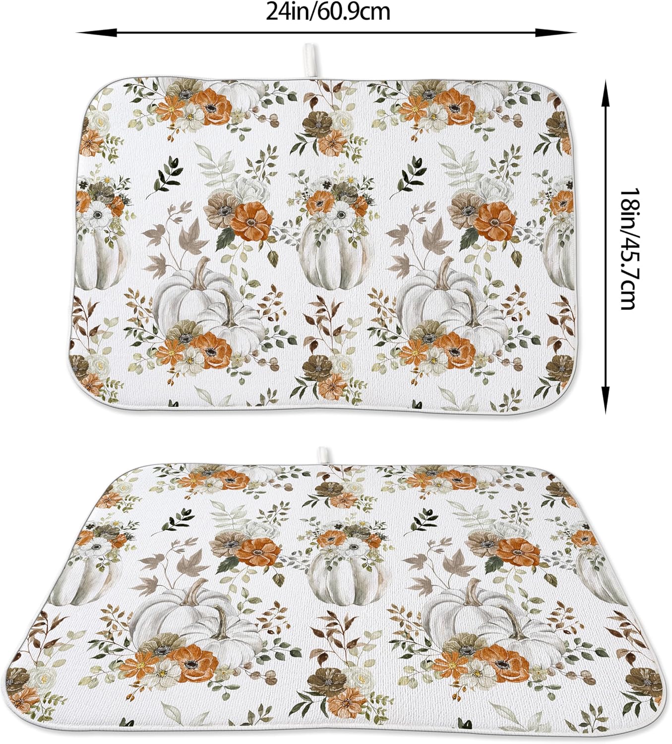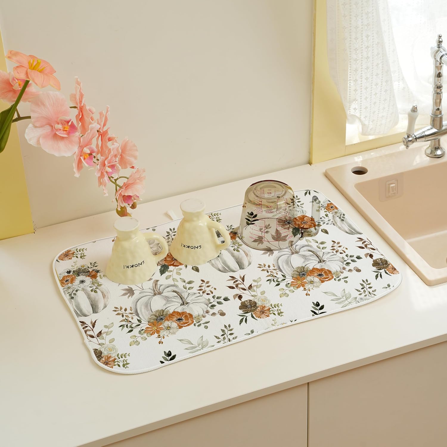 • Absorbent: Autumn pumpkin decorative dish drying mats for kitchen counter surface is a super absorbent microfiber and the middle is a composite sponge that can absorb water