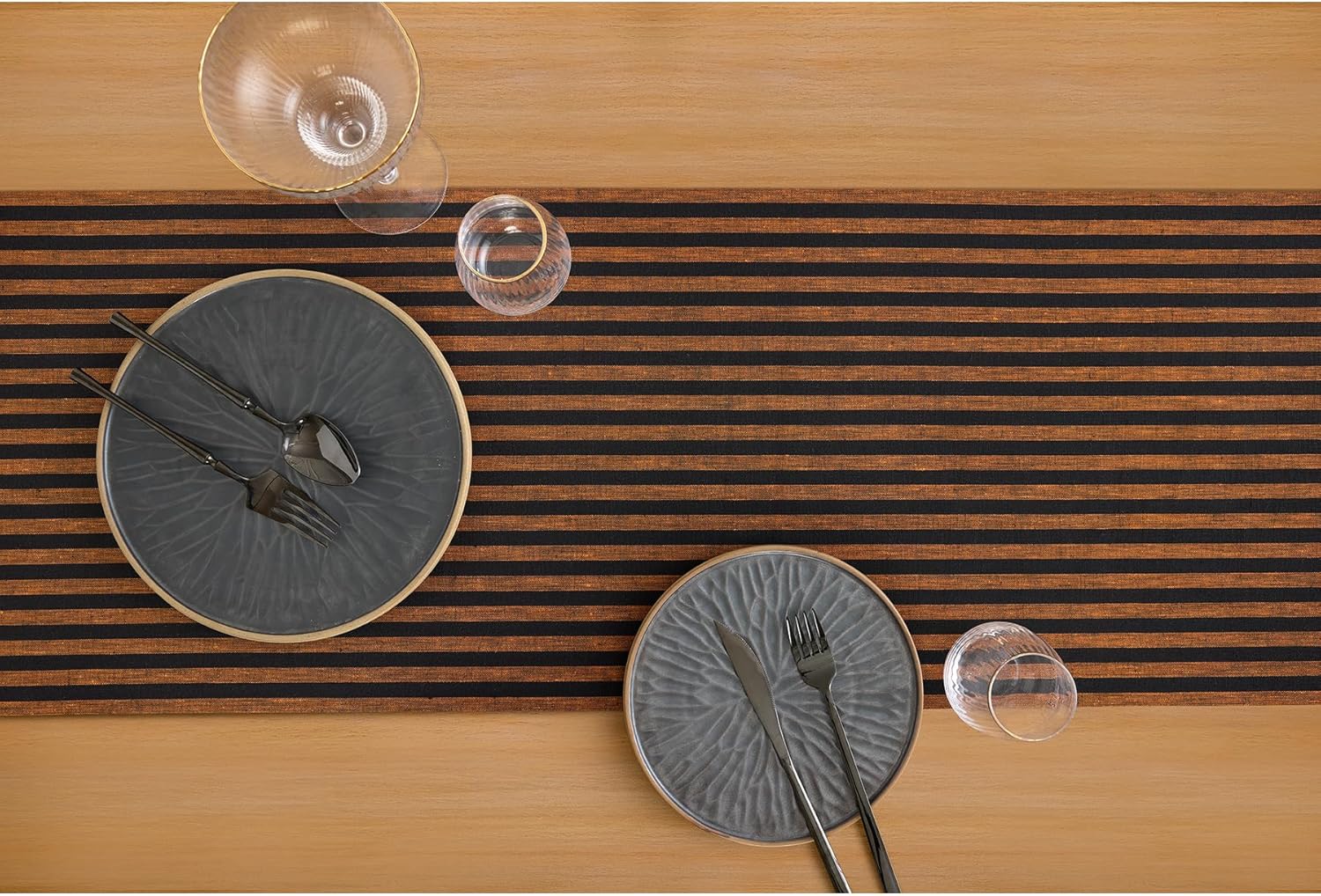• 𝗖𝗼𝗺𝗽𝗼𝘀𝗶𝘁𝗶𝗼𝗻 𝗮𝗻𝗱 𝗖𝗿𝗮𝗳𝘁𝘀𝗺𝗮𝗻𝘀𝗵𝗶𝗽 : 100% Pure European Flax Linen Pumpkin and Black Fall Table Runner - 𝗔𝗺𝗮𝗹𝗳𝗶 𝗦𝘁𝗿𝗶𝗽𝗲 | Handcrafted By Skilled Artisans.
