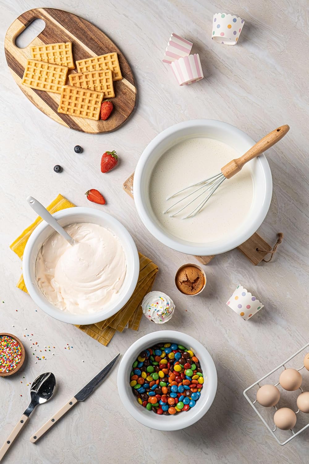 • Elegant & Versatile– Set includes 1-qt, 1.5-qt, and 2.5-qt round porcelain bowls, perfect for prepping, serving, and stylish dining.