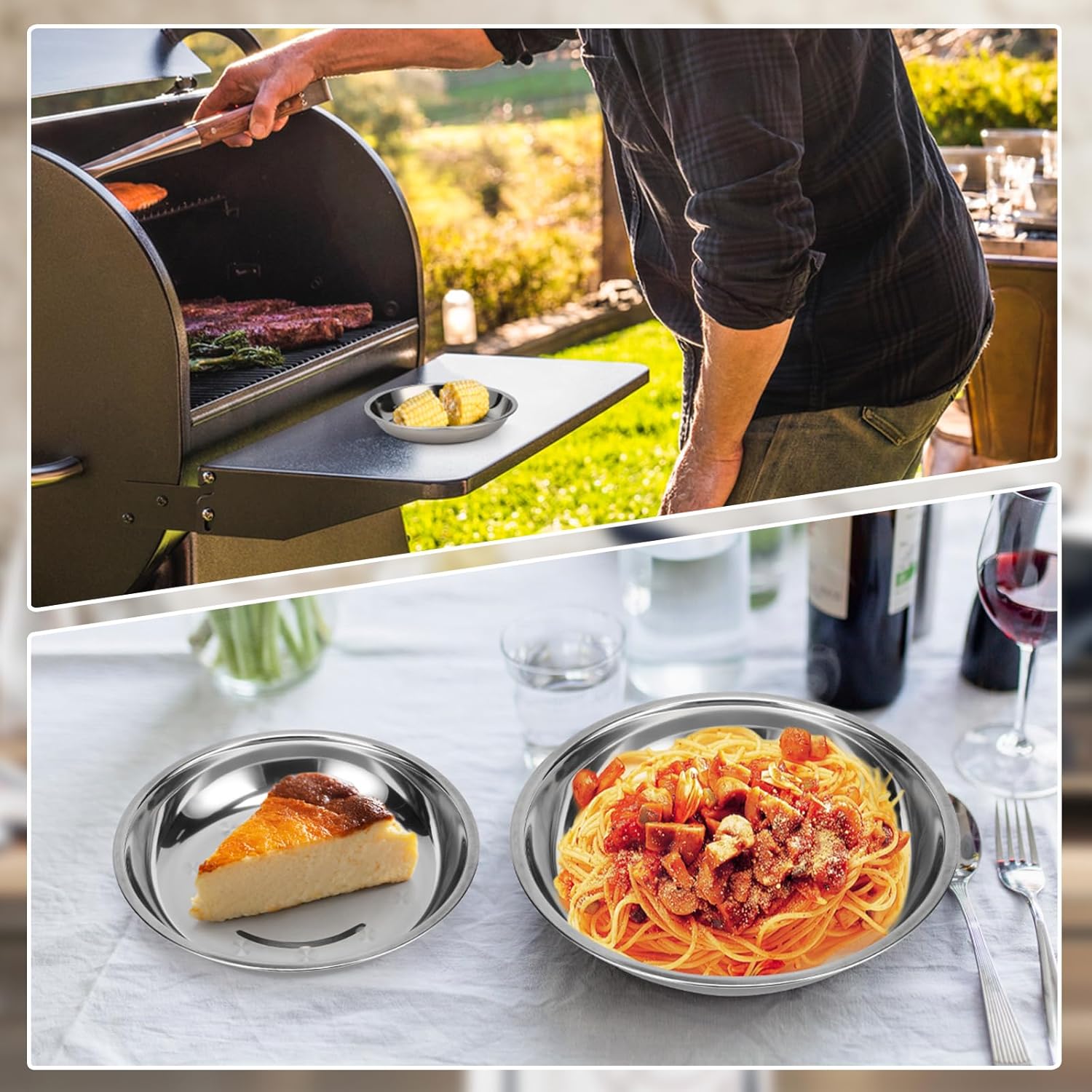 • A Better Alternative to Plastic: These deep patterned stainless plates are a fantastic replacement for traditional plastic ones. They keep good shapes and work well when heated, ensuring a better dining experience. Whether you’re dining on the patio or camping, you won't need to worry about a gust of wind blowing your plates and food away, unlike with plastic plates and trays.