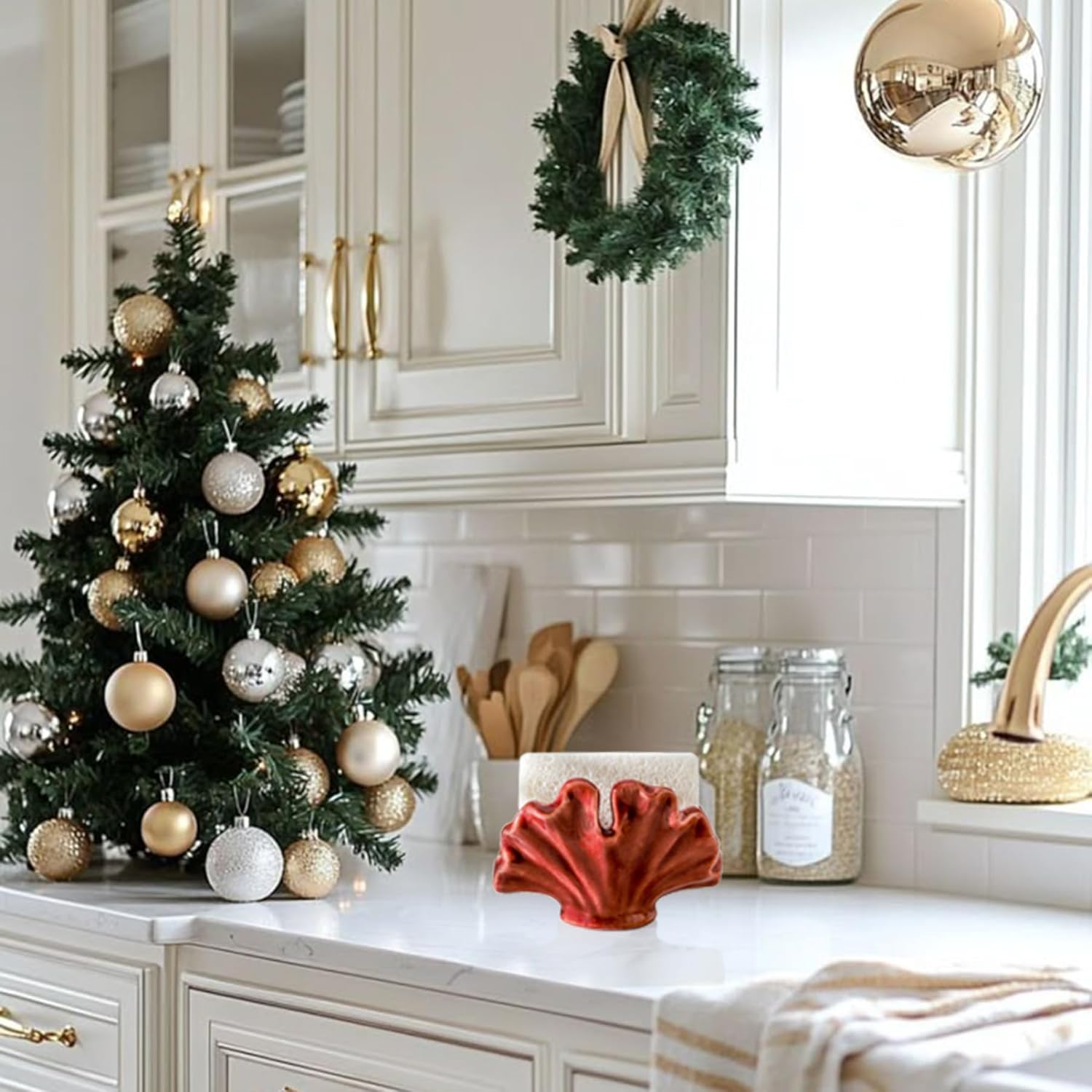 Ceramic Sponge Holder,Sponge Holder for Kitchen Sink,Compact Sink Caddy Organizer-Scouring Pad and Dish Sponge Holders,Farmhouse Kitchens Decor Cute Kitchen Gadgets Accessories(Red)