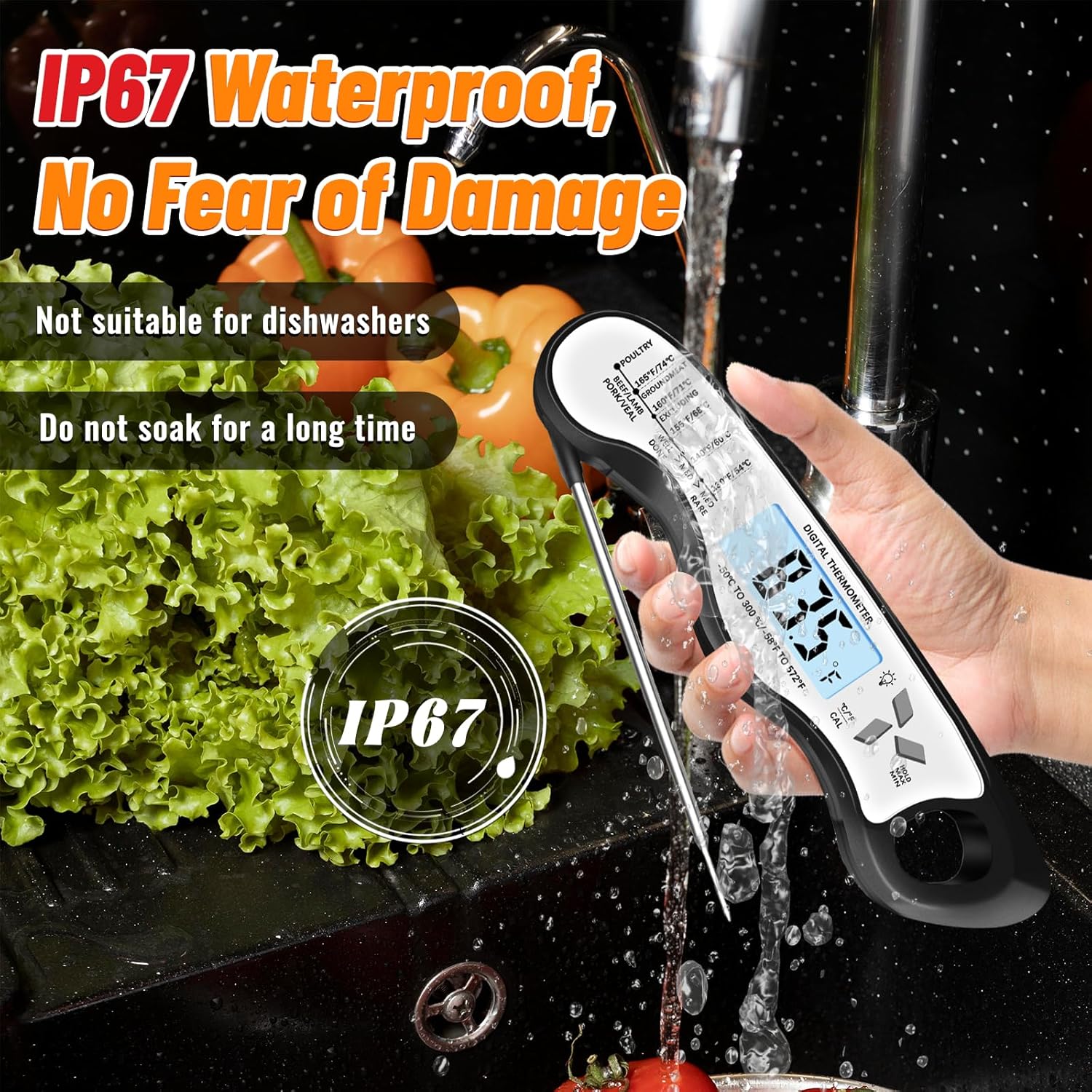 Meat Thermometer, IP67 Waterproof Digital Meat Thermometer with Backlight, Hold Function & Magnet for Grill, BBQ, Candy, Beef,Turkey,Gadgets Essentials BBQ Accessories,Mens Stocking Stuffers
