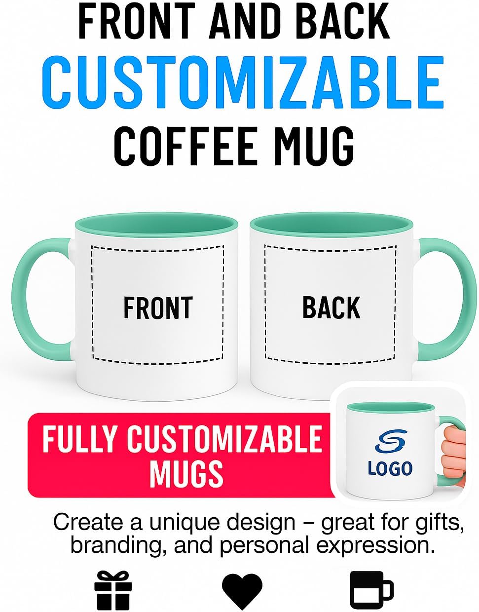 • Fully Customizable – Click "Customize Now" to personalize this coffee mug with your own photos, text (like a name or special message), or even a logo. Design both the front and back of the cup independently to create a unique piece that showcases your creativity. Make your own mug that perfectly reflects your style or celebrates a loved one in a truly personal way.