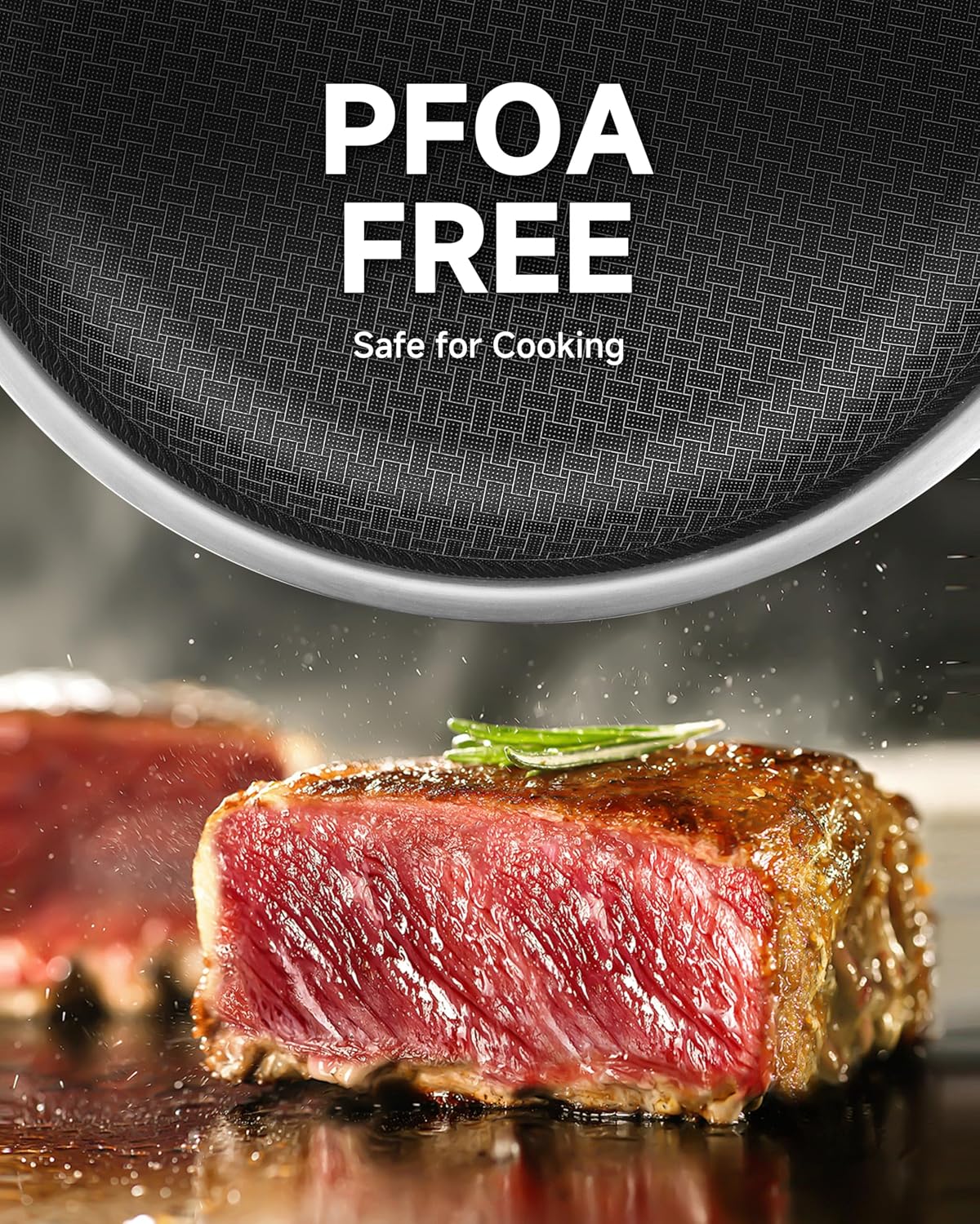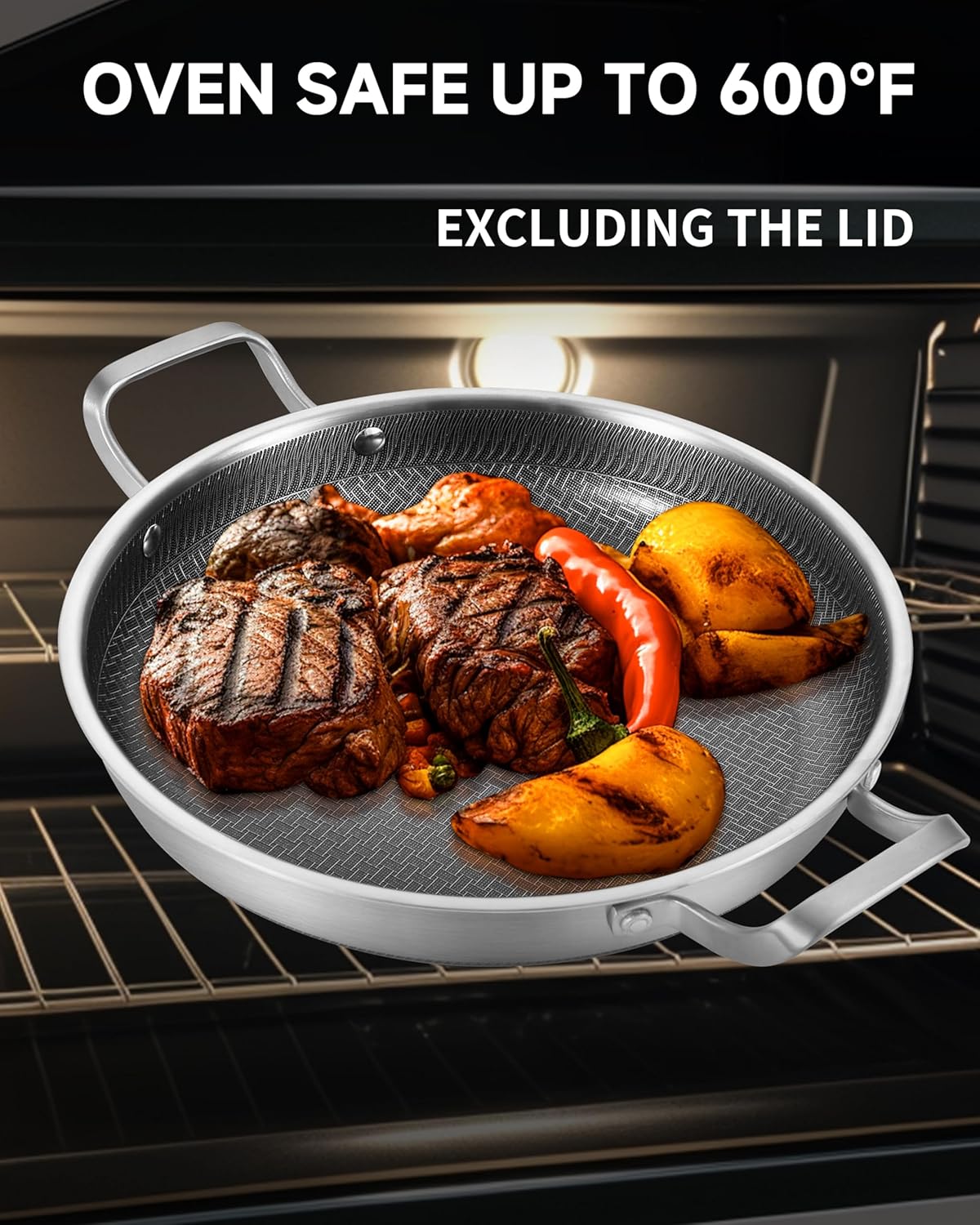 • 【TRI-PLY CLAD FOR PROFESSIONAL COOKING】 Engineered for optimal performance, our triple-layer clad construction distributes heat quickly and uniformly across the entire cooking surface. The uniform distribution of heat ensures optimal cooking results, whether searing steaks or sautéing vegetables, without frustrating hot spots.