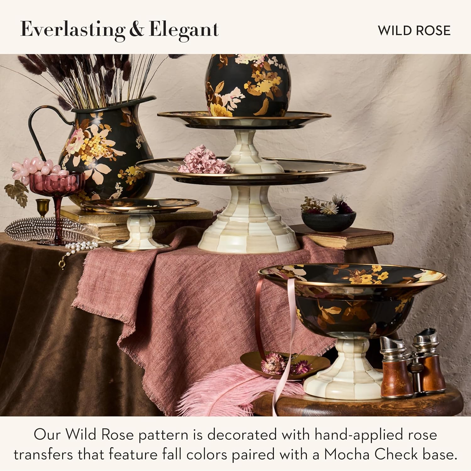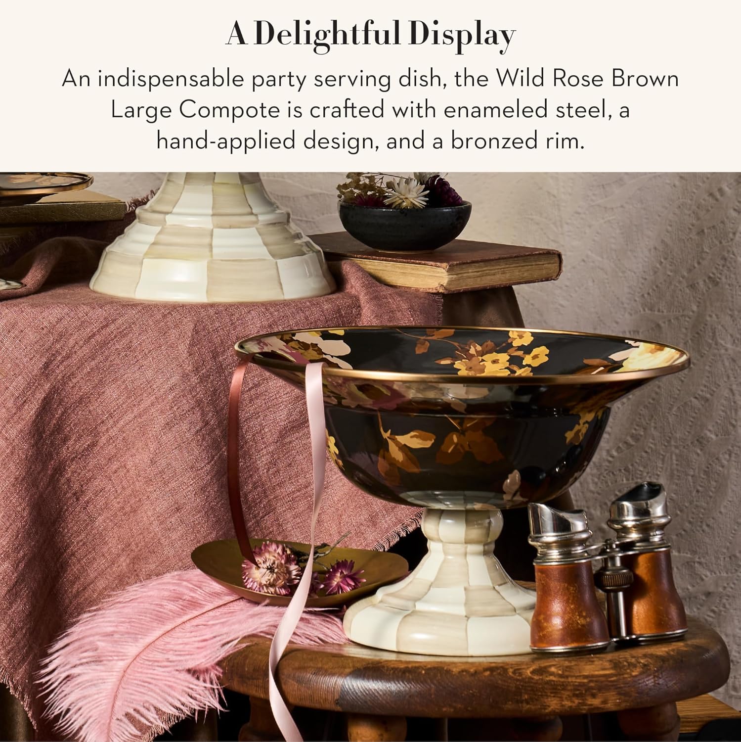 MACKENZIE-CHILDS Enamel Compote, Pedestal Serving Dish or Decorative Bowl, Large, Wild Rose Brown