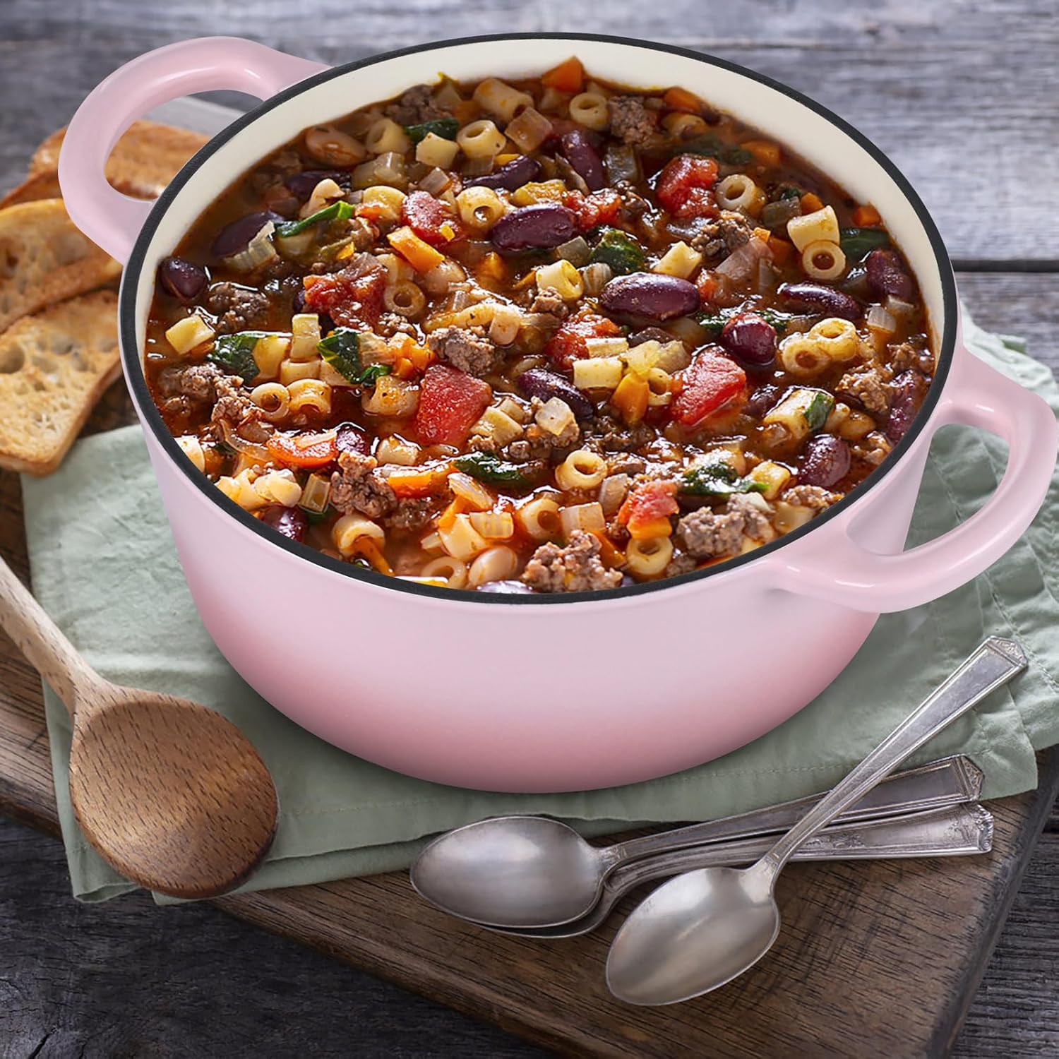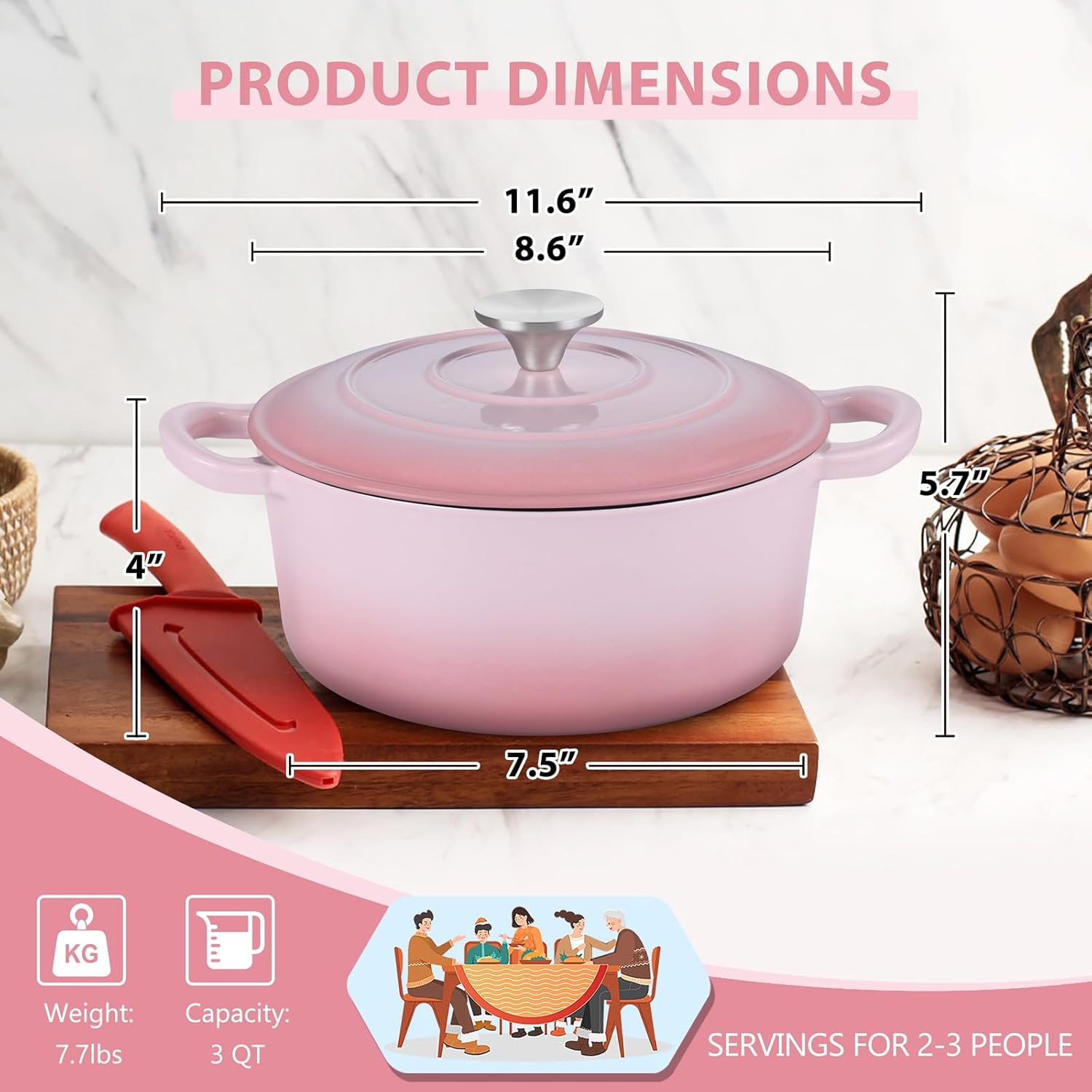 E-far 3 Qt Enameled Cast Iron Dutch Oven with Lid, Small Round Nonstick Dutch Oven Pot for Bread Baking Braising Stews Roasting Cooking, Heavy Duty, Induction & Oven Safe - Pink